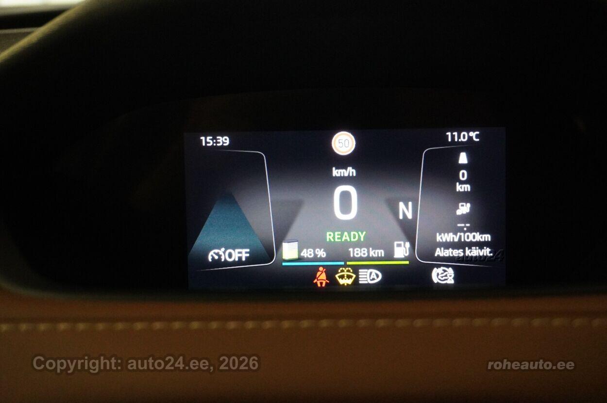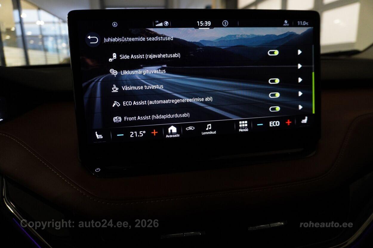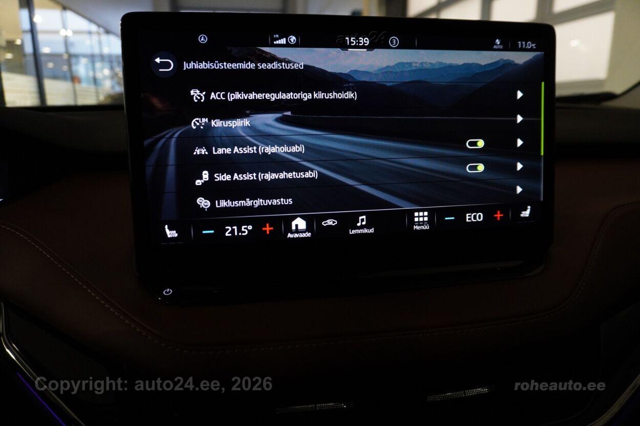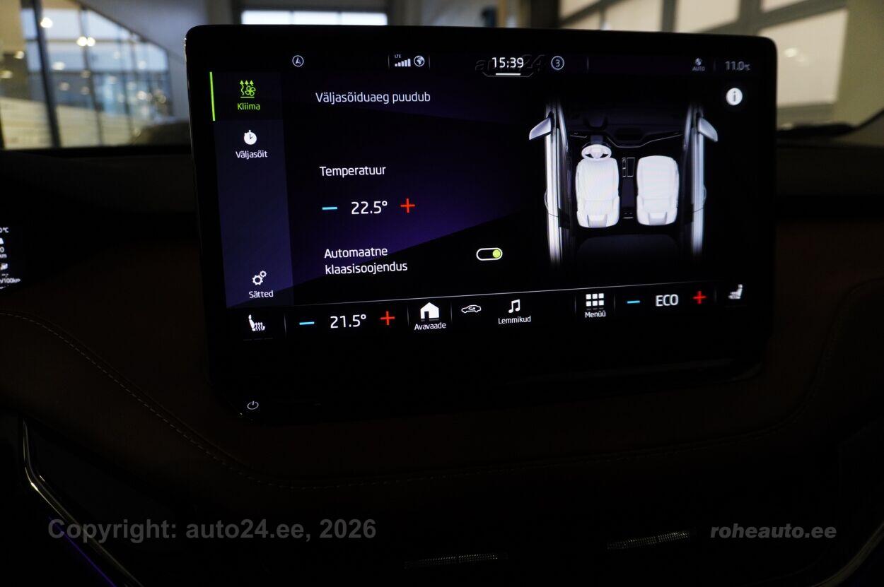 automaatpidurdussüsteem, kliimaautomaatik, roolivõimendi (kiirustundlik), kesklukustus (puldiga), ABS pidurid, turvapadi, elektrooniline seisupidur, immobilisaator, signalisatsioon (kaldeanduriga, mahuanduriga), lisapidurituli, stabiilsuskontroll, kokkupõrget ennetav pidurisüsteem, pidurdusjõukontroll, sõiduraja hoidmise abisüsteem, liiklusmärkide tuvastus ja kuvamine, pimenurga hoiatus, veojõukontroll, vihmasensor, ISOFIX lasteistme kinnitus (ees, taga), kõrvalistuja turvapadja väljalülitamise võimalus, automaatne paigalseismise funktsioon / mägistardi abi, juhi väsimuse tuvastamise süsteem, valgustuspakett, udutuled (tagumine), LED (päevatuled, tagatuled, lähituled, kaugtuled), esitulede pesurid, päevasõidutulede automaatne lülitus, kaugtulede ümberlülitamise assistent, talverehvid (naastrehvid), valuveljed, autoga antakse kaasa (suverehvid, valuveljed), rehvirõhu kontrollsüsteem, reguleeritav roolisammas (kõrgus ja sügavus), multifunktsionaalne rool, nahkkattega rool, soojendusega rool, käiguvahetus roolilt, stereo (USB pesaga, originaal), kõlarid, Apple CarPlay, Android Auto, ekraan (ees), navigatsiooniseade (kaardiga), autokompuuter, käed vabad süsteem, iluliistud salongis, taskud esiistmete seljatugedes, jalamatid (kummist), topsihoidjad (ees, taga), nahkpolster, 2x elektriliselt reguleeritavad istmed (2x mäludega), istmed reguleeritava kõrgusega (juhiiste, kõrvalistuja iste), reguleeritava kumerusega seljatugi (juhiiste, kõrvalistuja iste), istmesoojendused, massaažifunktsiooniga istmed (juhil), käetugi ees (laekaga), käetugi taga, tagaistme seljatugi allaklapitav, elektrilised välispeeglid (soojendusega, kokkuklapitavad), elektrilised akende tõstukid, toonitud klaasid, katuseluuk (klaasist, elektriline), püsikiiruse hoidja (eessõitjaga distantsi hoidev), peeglid päikesesirmides, rulookardinad ustel, salongi eelsoojendus, kohtvalgustid, parkimisandurid (ees, taga), parkimiskaamera, Coming-/Leaving-Home funktsioon, digitaalne näidikutepaneel, telefoni juhtmevaba laadimine, võtmeta avamine, võtmeta käivitus, 12v pistikupesad, reisiarvesti, pakiruumi avamine elektriliselt (puldist), pagasikate, katusereelingud, veokonks (elektriline), haagise stabiliseerimissüsteem, tagaklaasi soojendus, välistemperatuuri näidik, esi- ja tagarataste porikummid, tagaklaasi puhasti, Elektrilise lukustussüsteemiga haagisekonks, Elektriajamiga toonklaasist panoraam - katuseluuk, Comfort Seat Plus: elektriliselt seadistatavad esiistmed, juhiiste mälu- ning massaažifunktsiooniga, Soojuspump, soojendab salongiõhku, tarbides tavapäraste kõrgepinge-kütteseadmetega võrreldes vähem energiat ja pakub küttepumbata elektrisõidukitega võrreldes suuremat sõiduulatust, Light & View Plus: maatriks-funktsionaalsusega LED-esilaternad, täiendav LED-valgustuspakett Crystal Face, Full-LED tagatuled koos dünaamiliste suunatuledega taga, esilaternate pesurid, Family Basic: rulookardinad tagumistel külgakendel, elektrooniline lastelukk tagaustele, 230V pistik keskonsooli tagaosas, USB-C liidesed keskkonsoolis |