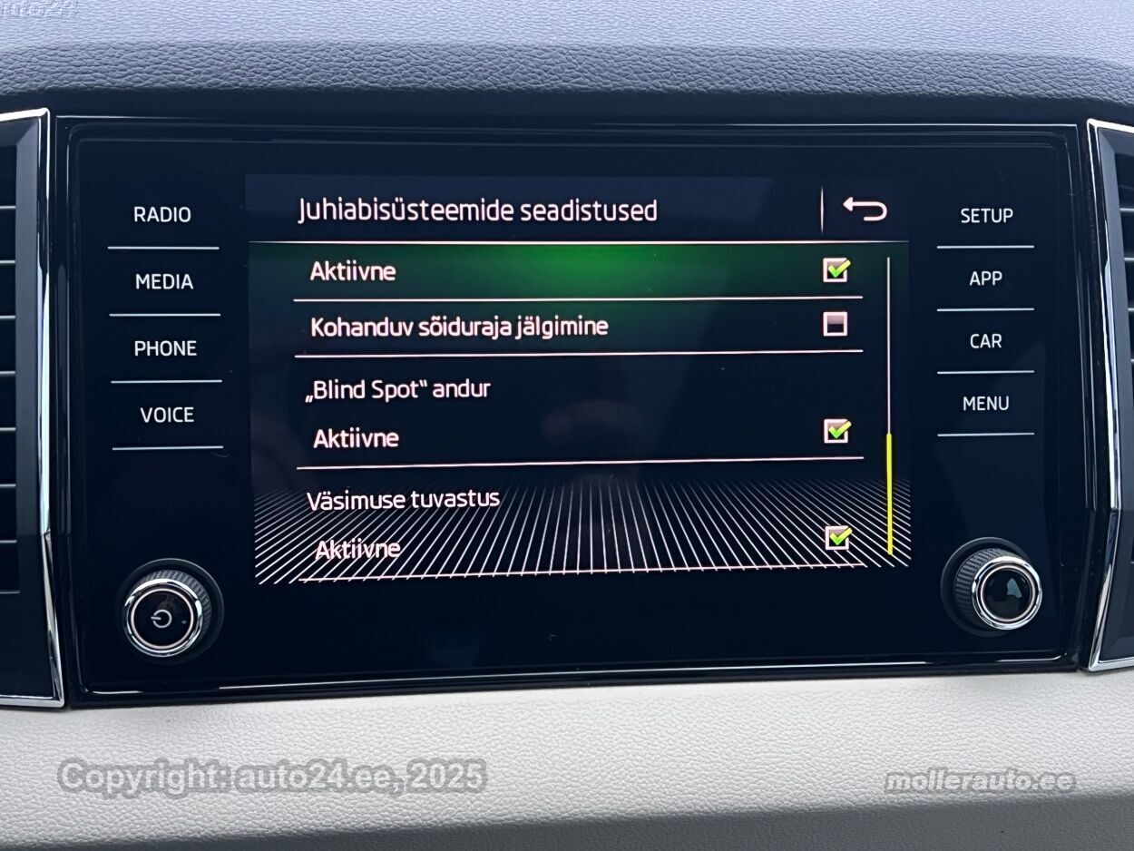 клима-автоматик, усилитель руля (чувствительный к скорости), центральный замок (с пультом), тормоза с АБС, электронный стояночный тормоз, 6x воздушная подушка, шторы безопасности, иммобилайзер, сигнализация (с датчиком наклона, с объемным датчиком), доп.стоп сигнал, система контроля стабильного положения, система предотвращения столкновения, система контроля тормозного усилия, система удержания полосы движения, ассистент смены полосы движения, система контроля слепых зон, противобуксовочная система, датчик дождя, ISOFIX крепитель детских сидений (сзади), возможность выключит воздушную подушку переднего пассажира, автодержатель тормоза, система распознавания усталости водителя, светопакет, противотуманные фонари (передние, задний, с функцией дополнительного освещения в поворотах), омыватели передних фар, LED (фары дневного света, задние фары, ближнего света, дальнего света), автоматическое включение фар, ассистент переключения дальнего света, летняя резина, литые диски (18, Škoda), вместе с автомобилем впридачу (зимняя резина), система контроля давления в шинах, регулируемый руль (по высоте и глубине), многофункциональный руль, руль обшитый кожей, CANTON стерео (гнездо для USB, оригинальное), усилитель звука, 10 x звуковые колонки, Apple CarPlay, Android Auto, экран (спереди), компьютер, система "hands free", декоративные накладки в салоне, держатели стаканов (спереди), рукоятка переключения передач обшитая кожей, тёмная обшивка потолка, текстильная обивка, 1x электрически регулируемые сиденья (1x с памятью), регулируемые по высоте сидения (водительское сидение, пассажирское сидение), спинка с регулировкой выпуклости (водительское сидение, пассажирское сидение), 2x обогрев сидений, подлокотник спереди (с ящиком), складывающаяся спинка заднего сиденья, Comfort сиденья, электрические зеркала заднего вида (с подогревом, складывающиеся, с памятью), 4x электрические стеклоподъемники, тонированные стекла, люк на крыше (из стекла, электрический), панорамная крыша, круиз контроль (с удержанием дистанции до переднего транспортного средство), 2x противосолнечные козырьки с зеркалами (с подсветкой), автоматически затемняемые зеркала (в салоне, внешние), встроенное освещение в дверях, местная подсветка, датчики парковки, парковочная камера, Coming-/Leaving-Home функция, запасное колесо, безключевой доступ, безключевой запуск, старт-стоп система, 12v электрические розетки, счетчик поездки, электронное открывание багажника (с пульта), крышка багажного отделения, дуги на крыше, прицепное устройство (электрический, съемное), крючки крепления багажа, подогрев заднего стекла, подогрев форсунок омывателя, показатель температуры атмосферного воздуха, очиститель заднего стекла, "VARIOFLEX" tagaistmed, 230V pistikupesa + USB, |