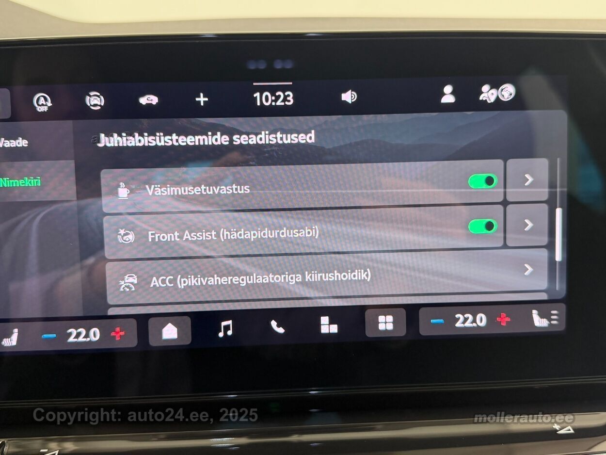 система автоматического торможения, клима-автоматик, усилитель руля (чувствительный к скорости), центральный замок (с пультом), тормоза с АБС, электронный стояночный тормоз, воздушная подушка, шторы безопасности, иммобилайзер, сигнализация (с датчиком наклона, с объемным датчиком), система контроля стабильного положения, система предотвращения столкновения, система контроля тормозного усилия, система удержания полосы движения, ассистент смены полосы движения, система распознавания дорожных знаков, система контроля слепых зон, противобуксовочная система, датчик дождя, ISOFIX крепитель детских сидений (спереди, сзади), возможность выключит воздушную подушку переднего пассажира, автодержатель тормоза, система распознавания усталости водителя, LED (фары дневного света, задние фары, ближнего света, дальнего света), омыватели передних фар, автоматическое включение фар, ассистент переключения дальнего света, летняя резина, литые диски, вместе с автомобилем впридачу (зимняя резина), регулируемый руль (по высоте и глубине), многофункциональный руль, руль обшитый кожей, руль с отеплением, переключение скоростей с руля, стерео (оригинальное), звуковые колонки, Apple CarPlay, Android Auto, экран (спереди), система "hands free", декоративные накладки в салоне, карманы в спинках передних сидений, коврики (текстильные, резиновые), держатели стаканов, текстильная обивка, регулируемые по высоте сидения (водительское сидение, пассажирское сидение), спинка с регулировкой выпуклости, обогрев сидений, подлокотник спереди (с ящиком), подлокотник сзади, складывающаяся спинка заднего сиденья, электрические зеркала заднего вида (с подогревом, складывающиеся), электрические стеклоподъемники, тонированные стекла, круиз контроль (с удержанием дистанции до переднего транспортного средство), противосолнечные козырьки с зеркалами (с подсветкой), автоматически затемняемые зеркала, местная подсветка, датчики парковки (спереди, сзади), парковочная камера, Coming-/Leaving-Home функция, цифровая приборная панель, беспроводная зарядка телефона, безключевой доступ, безключевой запуск, старт-стоп система, 12v электрические розетки, электронное открывание багажника (движением ноги, с пульта), крышка багажного отделения, подогрев переднего стекла, подогрев заднего стекла, показатель температуры атмосферного воздуха, Maatriks-funktsionaalsusega LED-esilaternad (valgusvihu jaotust, kaugust ja suunda reguleeritakse automaatselt), esilaternate pesurid, Soojendusega esiklaas, 2 kodaraga soojendusega multifunktsionaalne nahkrool DSG käiguvahetusega roolilt, Adaptiivne püsikiirushoidik |