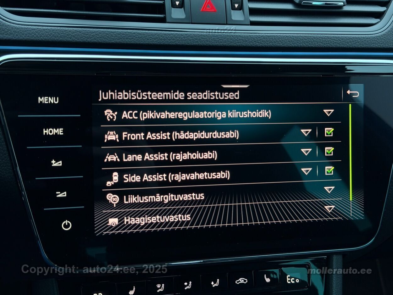 клима-автоматик, усилитель руля (чувствительный к скорости), центральный замок (с пультом), тормоза с АБС, 6x воздушная подушка, электронный стояночный тормоз, шторы безопасности, иммобилайзер, доп.стоп сигнал, система контроля стабильного положения, система предотвращения столкновения, система удержания полосы движения, система контроля тормозного усилия, ассистент смены полосы движения, система распознавания дорожных знаков, система контроля слепых зон, противобуксовочная система, датчик дождя, ISOFIX крепитель детских сидений (сзади), автодержатель тормоза, возможность выключит воздушную подушку переднего пассажира, система распознавания усталости водителя, охлаждение перчаточного ящика, светопакет, противотуманные фонари (передние, задний, с функцией дополнительного освещения в поворотах), LED (фары дневного света, задние фары, ближнего света, дальнего света), омыватели передних фар, автоматическое включение фар, ассистент переключения дальнего света, адаптивные фары поворота, литые диски (19, Škoda), система контроля давления в шинах, регулируемый руль (по высоте и глубине), многофункциональный руль, руль обшитый кожей, спортивный руль, руль с отеплением, переключение скоростей с руля, CANTON стерео (гнездо для USB, оригинальное), усилитель звука, сабвуфер, Apple CarPlay, Android Auto, экран (спереди), система навигации (с картой), компьютер, система "hands free", декоративные накладки в салоне, коврики, держатели стаканов (спереди, сзади), рукоятка переключения передач обшитая кожей, тёмная обшивка потолка, комбинированная кожаная обивка, 2x электрически регулируемые сиденья (2x с памятью), регулируемые по высоте сидения (водительское сидение, пассажирское сидение), 4x обогрев сидений, спинка с регулировкой выпуклости (водительское сидение, пассажирское сидение), подлокотник спереди (с ящиком), подлокотник сзади, складывающаяся спинка заднего сиденья, спортивные сиденья, электрические зеркала заднего вида (с подогревом, складывающиеся, с памятью), 4x электрические стеклоподъемники, тонированные стекла, круиз контроль (с удержанием дистанции до переднего транспортного средство), 2x противосолнечные козырьки с зеркалами (с подсветкой), отдельный кондиционер для задних сидений, автоматически затемняемые зеркала (в салоне, внешние), местная подсветка, датчики парковки (спереди, сзади), парковочная камера, Coming-/Leaving-Home функция, цифровая приборная панель, беспроводная зарядка телефона, безключевой доступ, безключевой запуск, 12v электрические розетки, счетчик поездки, регулируемое подвеска (электрически, жесткость), электронное открывание багажника (движением ноги, с пульта), крышка багажного отделения, крючки крепления багажа, прицепное устройство (электрический, съемное), подогрев переднего стекла, подогрев заднего стекла, подогрев форсунок омывателя, показатель температуры атмосферного воздуха, двойные стекла, очиститель заднего стекла |