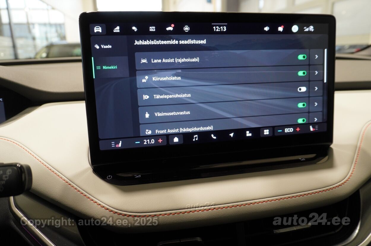 клима-автоматик, усилитель руля (чувствительный к скорости), центральный замок (с пультом), тормоза с АБС, электронный стояночный тормоз, воздушная подушка, иммобилайзер, сигнализация (с датчиком наклона, с объемным датчиком), доп.стоп сигнал, система контроля стабильного положения, система предотвращения столкновения, система удержания полосы движения, система контроля тормозного усилия, система распознавания дорожных знаков, система контроля слепых зон, противобуксовочная система, датчик дождя, ISOFIX крепитель детских сидений (спереди, сзади), автодержатель тормоза, возможность выключит воздушную подушку переднего пассажира, система распознавания усталости водителя, противотуманные фонари (передние, задний), LED (фары дневного света, задние фары, ближнего света, дальнего света), автоматическое включение фар, ассистент переключения дальнего света, зимняя резина (ламельная резина), литые диски, вместе с автомобилем впридачу (летняя резина), система контроля давления в шинах, регулируемый руль (по высоте и глубине), многофункциональный руль, руль обшитый кожей, руль с отеплением, стерео (гнездо для USB, оригинальное), звуковые колонки, Apple CarPlay, Android Auto, экран (спереди), система навигации (с картой), компьютер, система "hands free", декоративные накладки в салоне, карманы в спинках передних сидений, коврики (текстильные), коврик багажника, держатели стаканов (спереди, сзади), тёмная обшивка потолка, комбинированная кожаная обивка, регулируемые по высоте сидения (водительское сидение, пассажирское сидение), 4x обогрев сидений, подлокотник спереди (с ящиком), подлокотник сзади, складывающаяся спинка заднего сиденья, электрические зеркала заднего вида (с подогревом, складывающиеся, с памятью), 4x электрические стеклоподъемники, тонированные стекла, круиз контроль (с удержанием дистанции до переднего транспортного средство), противосолнечные козырьки с зеркалами (с подсветкой), подогрев салона, отдельный кондиционер для задних сидений, местная подсветка, датчики парковки (спереди, сзади), парковочная камера, Coming-/Leaving-Home функция, цифровая приборная панель, беспроводная зарядка телефона, безключевой доступ, безключевой запуск, старт-стоп система, 12v электрические розетки, счетчик поездки, электронное открывание багажника (движением ноги, с пульта), крышка багажного отделения, дуги на крыше, крючки крепления багажа, прицепное устройство (электрический), система стабилизации прицепа, подогрев переднего стекла, подогрев заднего стекла, показатель температуры атмосферного воздуха, брызговики спереди и сзади, очиститель заднего стекла, Elektrilise lukustussüsteemiga haagisekonks, Pakett WINTER: 3-tsooniline kliimaseade Climatronic, soojendusega esiklaas, soojendusega esi- ja tagaistmed, Disainipakett "Lodge": musta värvi istmekatted tekstiil/kunstnahk, oranžid turvavööd ja dekoratiivõmblused, LED-valgusribad dekoratiivliistudes, valgustatud jalaruum, põrandamatid ees ja taga, pagasiruumi katte vaheasend, pagasikinnitusvahendid, Pakett PLUS: maatriks LED-esilaternad, Full-LED tagatuled koos dünaamiliste suunatuledega taga, külgturvapadjad taga, elektriliselt avatav ja suletav tagaluuk funktsiooniga "Virtual Pedal", võrkpanipaik pagasiruumi katte all, |