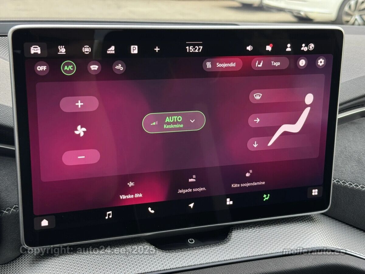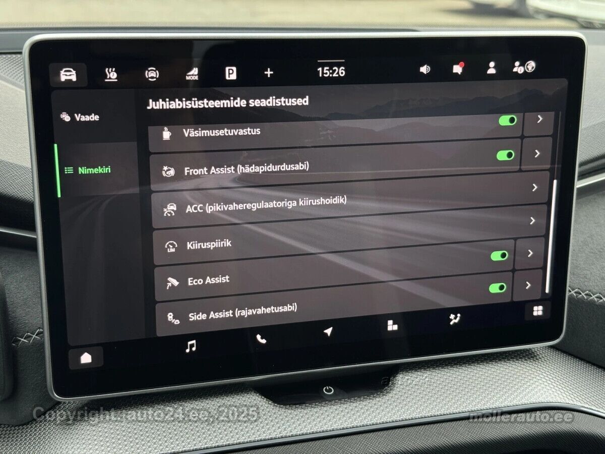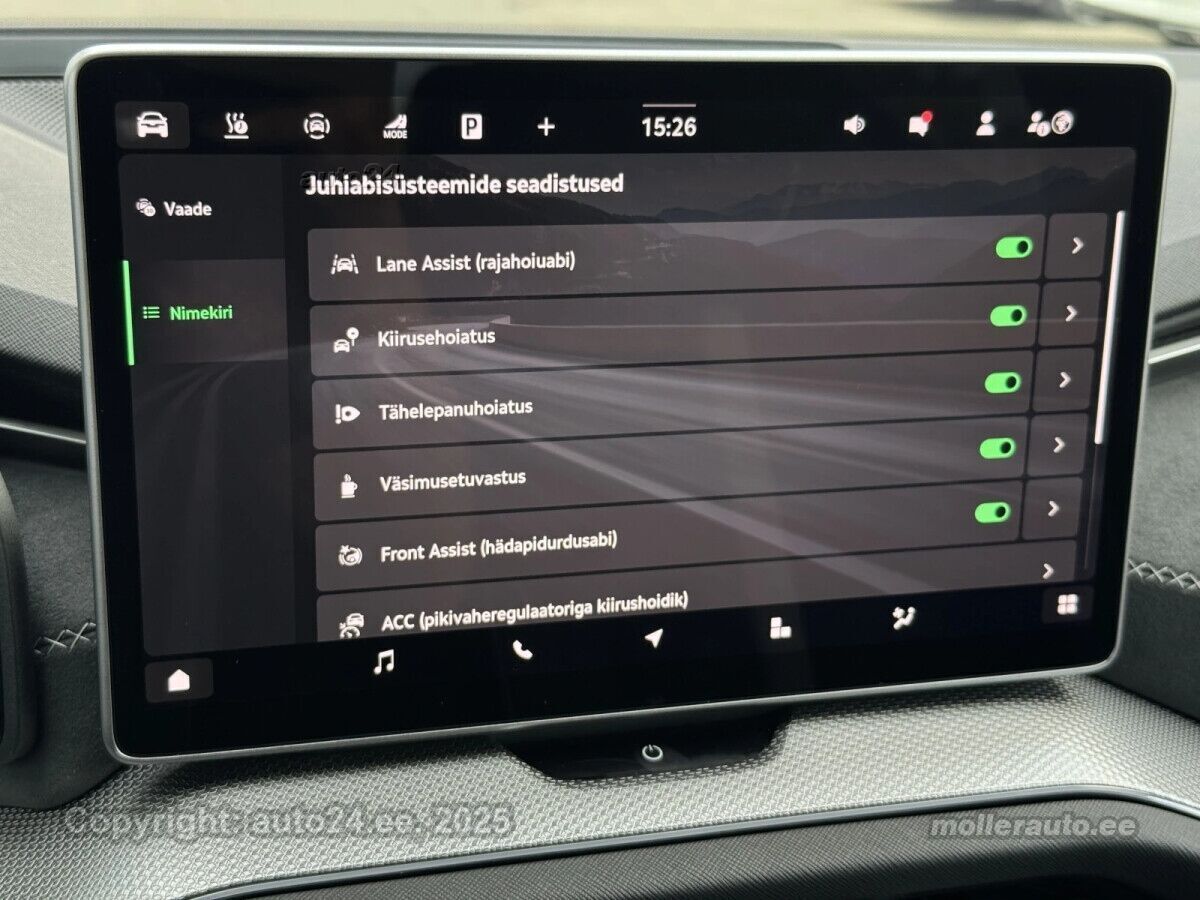 клима-автоматик, система автоматического торможения, усилитель руля (чувствительный к скорости), центральный замок (с пультом), тормоза с АБС, электронный стояночный тормоз, воздушная подушка, шторы безопасности, иммобилайзер, сигнализация (с датчиком наклона, с объемным датчиком), доп.стоп сигнал, система предотвращения столкновения, система контроля стабильного положения, система удержания полосы движения, система контроля тормозного усилия, ассистент смены полосы движения, система распознавания дорожных знаков, система контроля слепых зон, противобуксовочная система, натяжители ремней безопасности спереди, датчик дождя, ISOFIX крепитель детских сидений (спереди, сзади), автодержатель тормоза, возможность выключит воздушную подушку переднего пассажира, система распознавания усталости водителя, светопакет, противотуманные фонари (передние, задний, с функцией дополнительного освещения в поворотах), LED (фары дневного света, задние фары, ближнего света, дальнего света), автоматическое включение фар, ассистент переключения дальнего света, адаптивные фары поворота, литые диски (19", Rila Aero, antratsiithallid/poleeritud), система контроля давления в шинах, регулируемый руль (по высоте и глубине), многофункциональный руль, руль обшитый кожей, спортивный руль, руль с отеплением, переключение скоростей с руля, стерео (гнездо для USB, оригинальное), audiosüsteem Canton усилитель звука, звуковые колонки, audiosüsteem Canton сабвуфер, Apple CarPlay, Android Auto, экран (спереди), система навигации, компьютер, система "hands free", декоративные накладки в салоне, карманы в спинках передних сидений, коврики (велюровые), держатели стаканов (спереди, сзади), тёмная обшивка потолка, must nahk/Suedia комбинированная кожаная обивка, 2x электрически регулируемые сиденья (2x с памятью), регулируемые по высоте сидения (водительское сидение, пассажирское сидение), спинка с регулировкой выпуклости (водительское сидение, пассажирское сидение), 4x обогрев сидений, подлокотник спереди (с ящиком), подлокотник сзади, складывающаяся спинка заднего сиденья, электрические зеркала заднего вида (с подогревом, складывающиеся, с памятью), 4x электрические стеклоподъемники, тонированные стекла, круиз контроль (с удержанием дистанции до переднего транспортного средство), 2x противосолнечные козырьки с зеркалами (с подсветкой), Elektriline salongi seisuküte ja jahutus подогрев салона, автоматически затемняемые зеркала (в салоне, внешние), местная подсветка, датчики парковки (спереди, сзади), парковочная камера, Coming-/Leaving-Home функция, беспроводная зарядка телефона, безключевой доступ, безключевой запуск, 12v электрические розетки, счетчик поездки, крышка багажного отделения, дуги на крыше, крючки крепления багажа, подогрев переднего стекла, подогрев заднего стекла, показатель температуры атмосферного воздуха, комплект для ремонта шин, очиститель заднего стекла, Ettevalmistus haagisekonksu paigaldamiseks, Laadimiskaabel ühefaasilisele ühendusele (230 V), Horisontaalne LED-valgusriba iluvõres, Convenience Plus: el. seadistatavad esiistmed, mälufunktsiooniga, Smart Comfort Entry, "Virtual Pedal", audiosüsteem Canton, ruumisäästev varuratas, Pakett Winter Sport: soojendusega tagumised (äärmised) istmed, 3 kodaraga