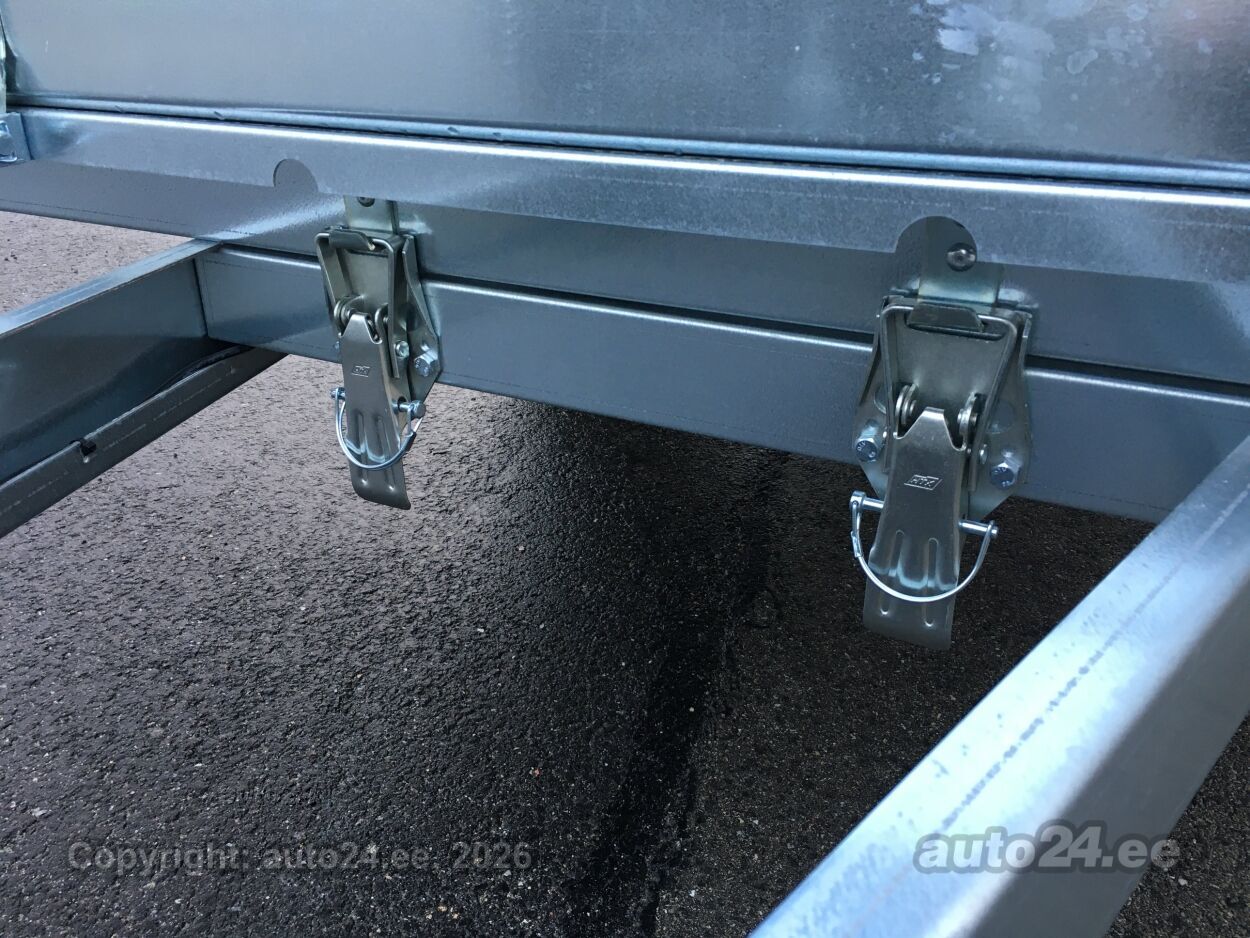 Varustus: STANDARDVARUSTUS: Innovaatilise lahendusega ülitugev HuckLok liidestega haagis, Reguleeritava klambriga tugiratas 150kg, täiskumm, Vastupidav keevisliitega sild 4-leheliste lehtvedrudega, Veokasti kallutus, Eemaldatav esi- ja tagaluuk, Vineeriga tugevdatud tagaluuk, Astmelauad, Metallist pealeastumist taluvad poritiivad, Tugevdatud 2-soonelised küljeprofiilid, Winterhoff (Saksa) veopea, LED ääretuled, Tasakaalustatud rattad M+S rehvidega, 8 kinnitusaasa (sees) ja 4 kinnituskonksu (väljas), Pistik 7 klemmi