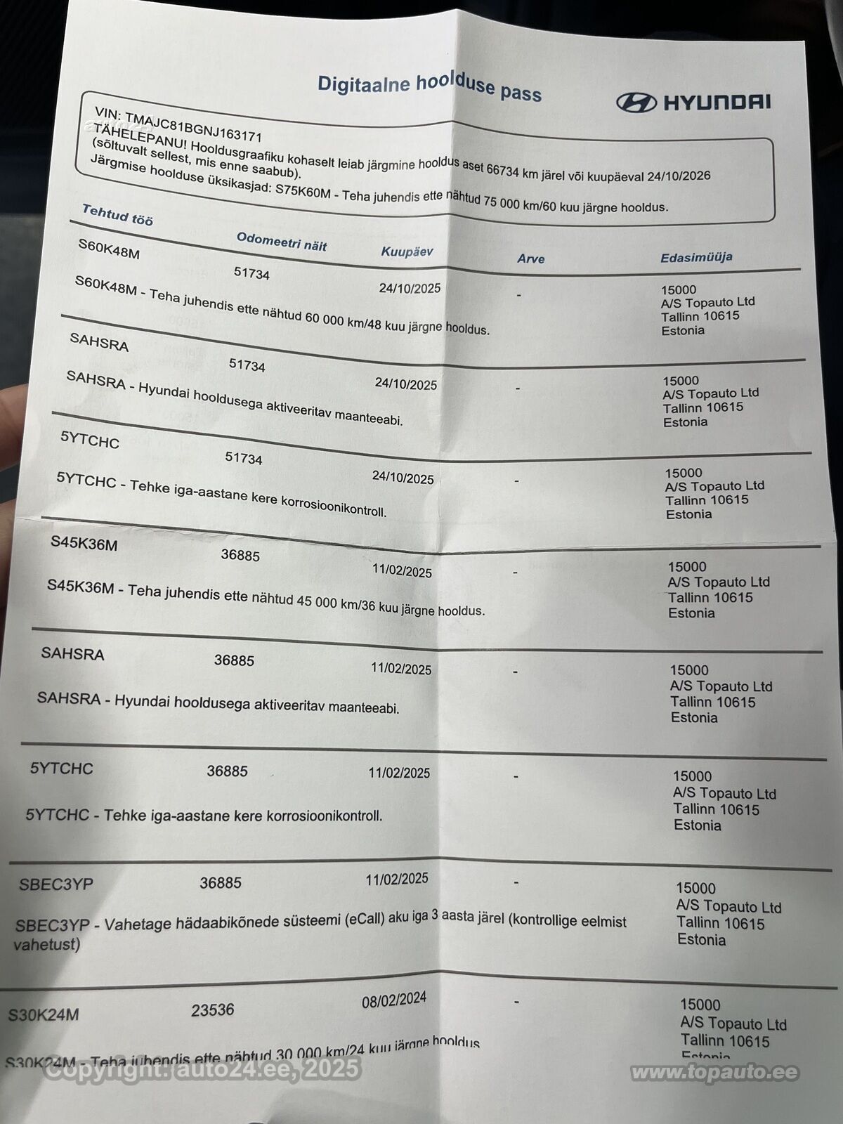 - Viimane hooldus 10.2025 läbisõidul 51 734 kilomeetrit