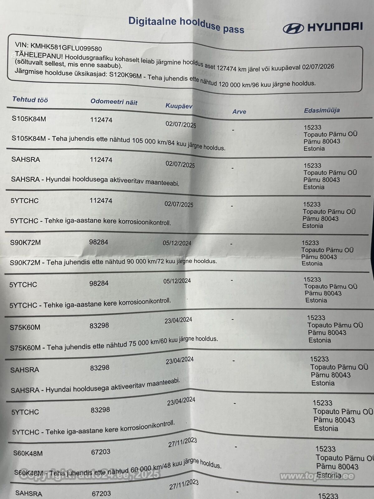 - Viimane hooldus 07.2025 läbisõidul 112 474 kilomeetrit