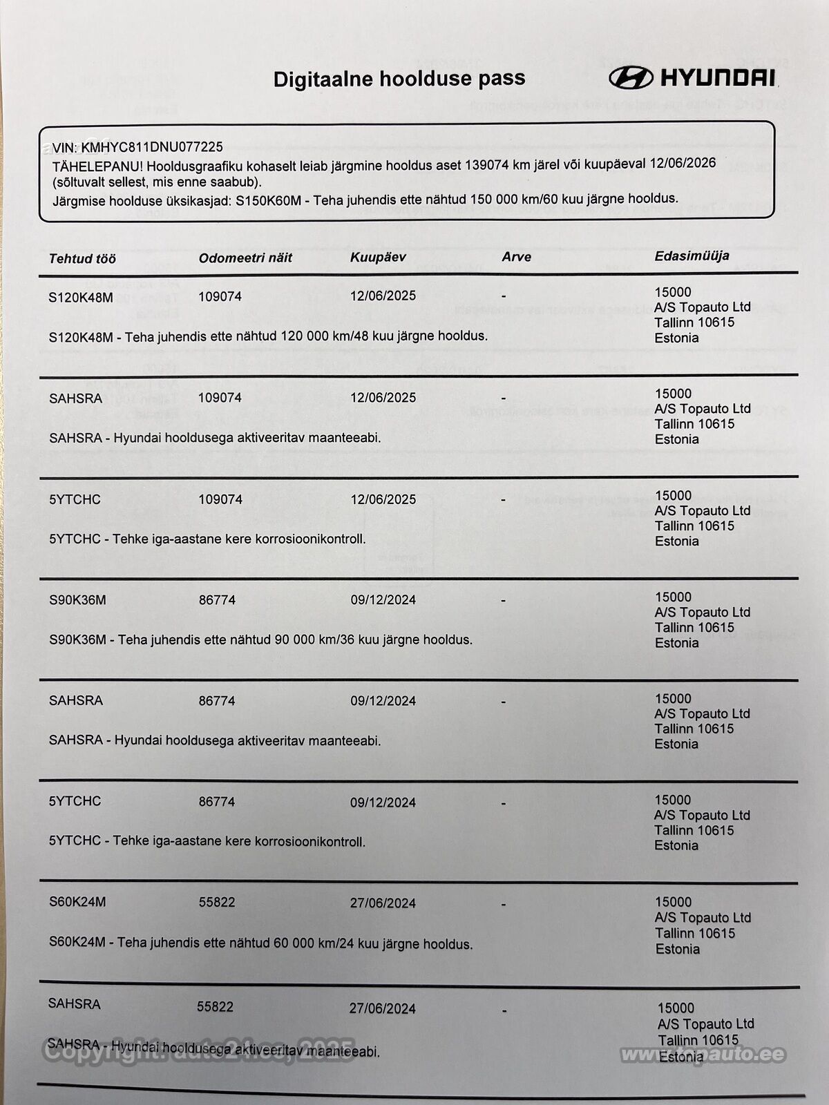 - Viimane hooldus 06.2025 läbisõidul 109 074 kilomeetrit