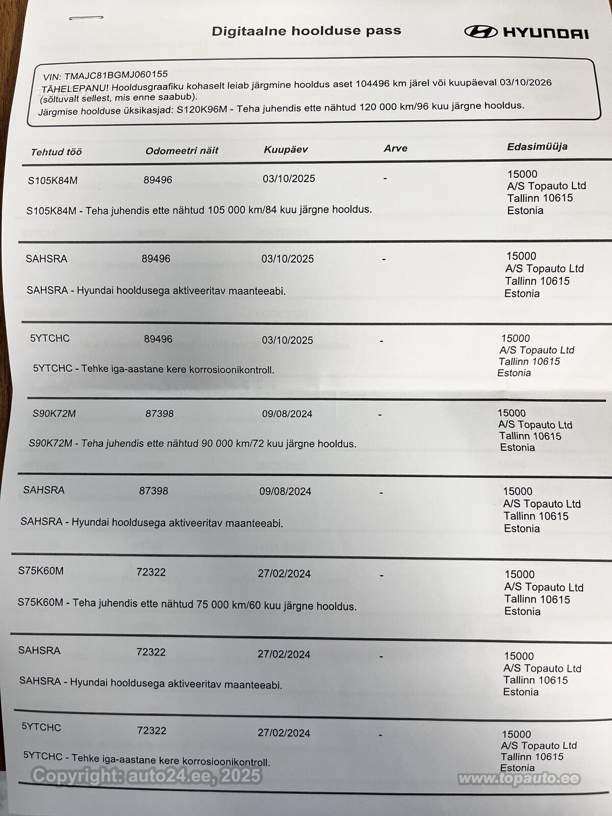 - Viimane hooldus 10.2025 läbisõidul 89 496 kilomeetrit