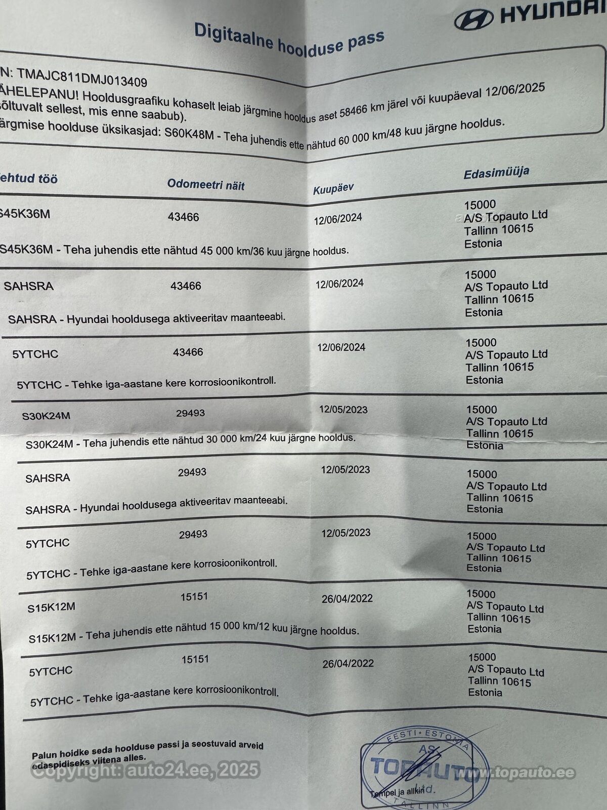 - Viimane hooldus 06.2024 läbisõidul 43 466 kilomeetrit