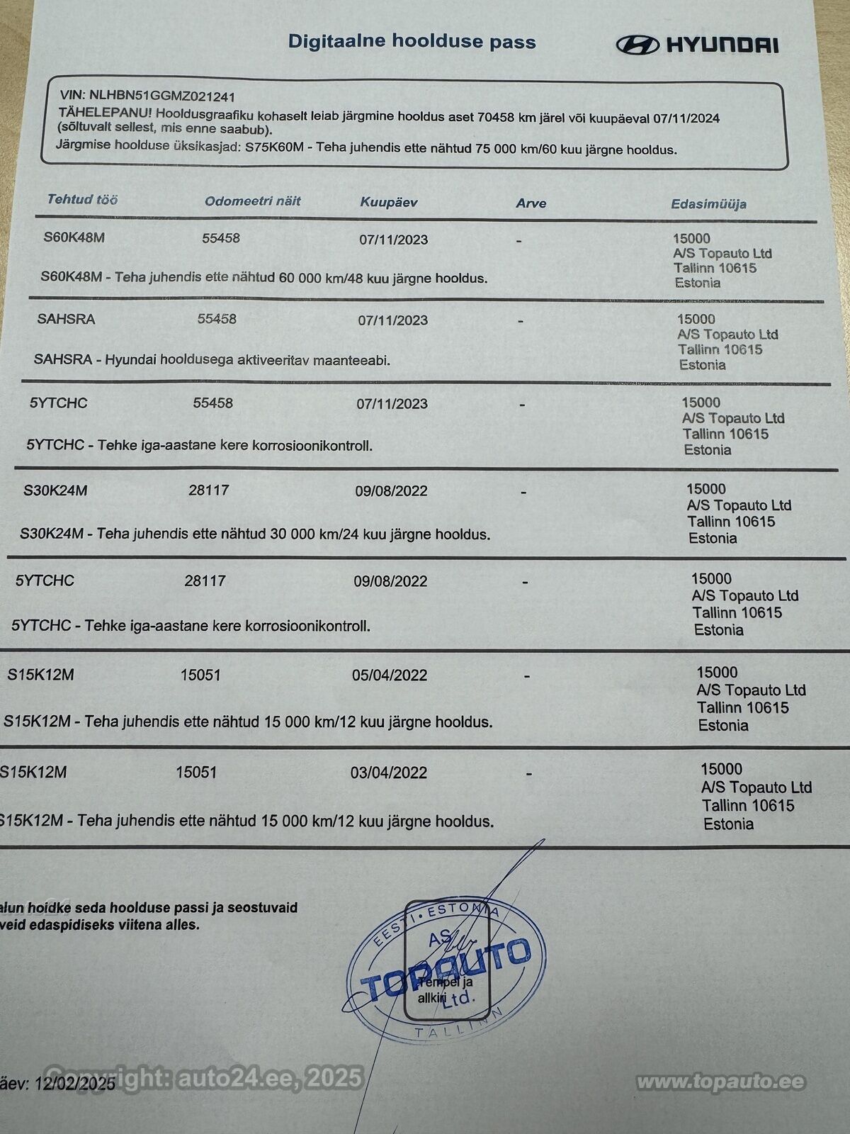 71 043 km hooldusraamat |