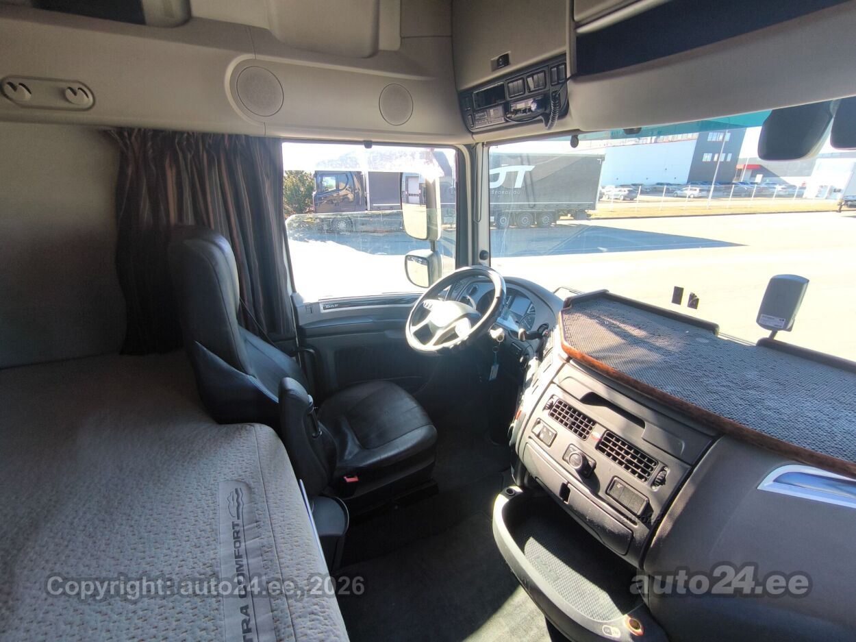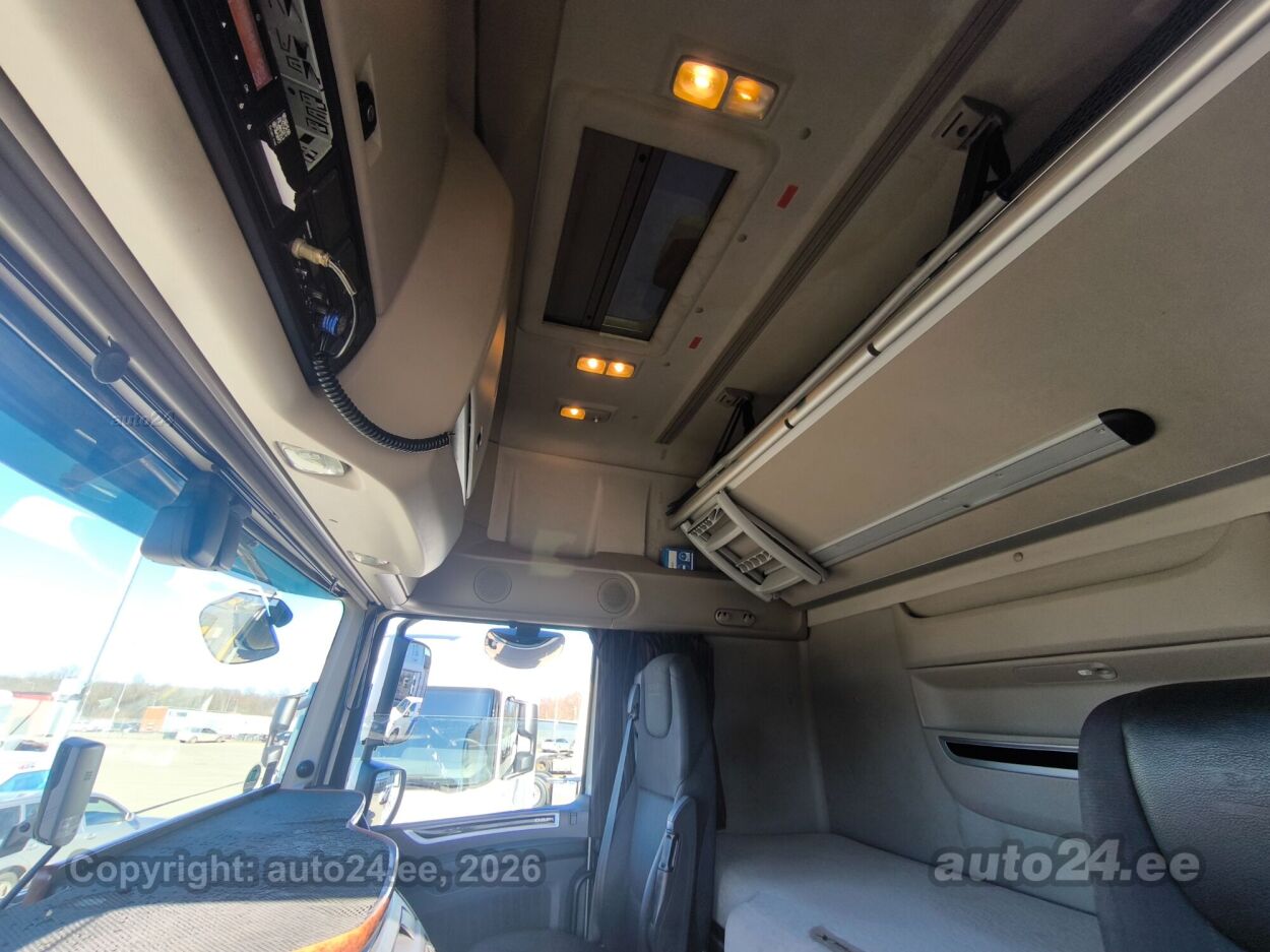 | Оборудование: | кондиционер, усилитель руля, центральный замок (с пультом), тормоза с АБС, иммобилайзер, система контроля стабильного положения, противобуксовочная система, противотуманные фонари (передние, задний), LED (фары дневного света, ближнего света, дальнего света), автоматическое включение фар, регулируемый руль (по высоте и глубине), многофункциональный руль, стерео, радио CB, текстильная обивка, 1x пневматически управляемое сидение, 1x обогрев сидений, электрические зеркала заднего вида (с подогревом), 2x электрические стеклоподъемники, люк на крыше (из стекла, электрический), круиз контроль (с удержанием дистанции до переднего транспортного средство), солнечные козырьки, дополнительный подогрев салона, регулируемое подвеска (электрически, высота), показатель температуры атмосферного воздуха, холодильник, EURO 6 в соотвествие с нормами для окружающей среды |