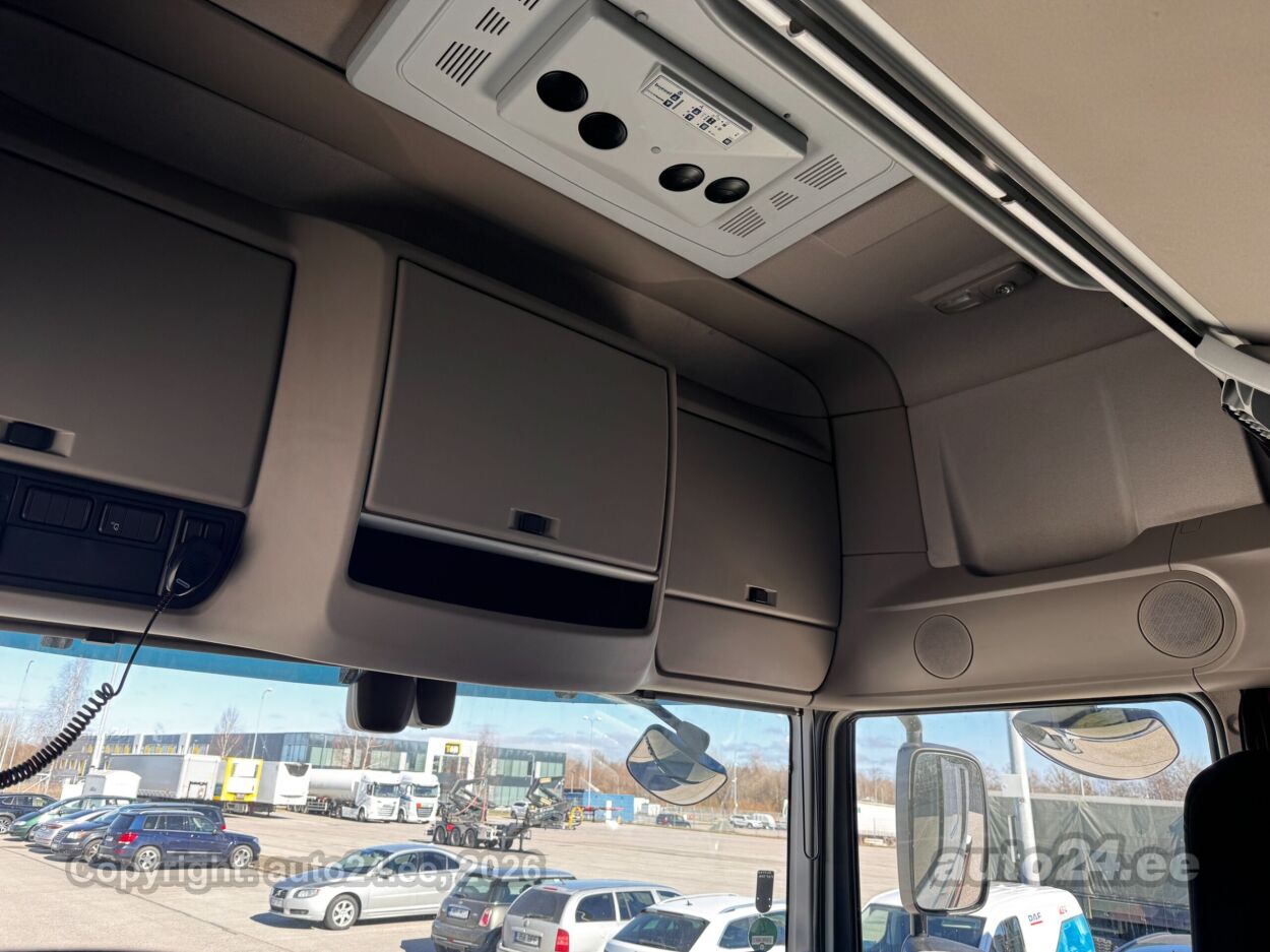 | Оборудование: | система автоматического торможения, кондиционер, усилитель руля, центральный замок (с пультом), тормоза с АБС, сигнализация, система контроля стабильного положения, система контроля тормозного усилия, противобуксовочная система, противотуманные фонари (передние, задний), дополнительные фары, LED (фары дневного света), автоматическое включение фар, рабочий свет взади, регулируемый руль (по высоте и глубине), многофункциональный руль, стерео (оригинальное), компьютер, радио CB, текстильная обивка, 1x пневматически управляемое сидение, обогрев сидений, электрические зеркала заднего вида (с подогревом), 2x электрические стеклоподъемники, люк на крыше (из стекла, электрический), круиз контроль (с удержанием дистанции до переднего транспортного средство), солнечные козырьки, подогрев салона, пульт управления взади, независимое отепление, интеркулер, ограничитель скорости, спойлер на крыше, регулируемое подвеска (высота), показатель температуры атмосферного воздуха, тахограф, холодильник, стояночный подогрев, MX-Mootoripidur |
