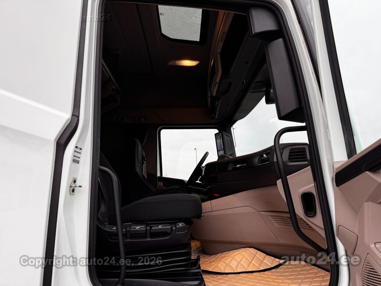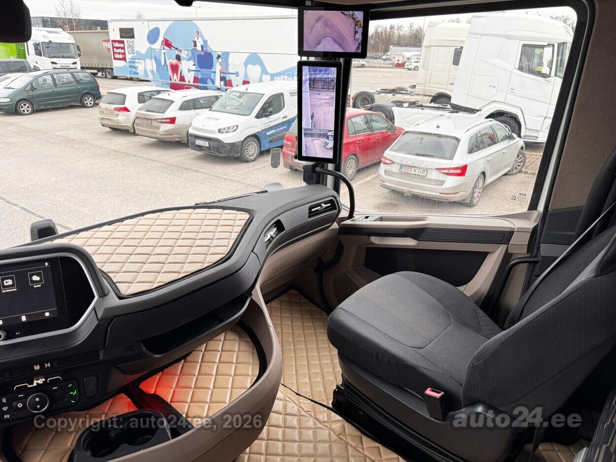 | Varustus: | automaatpidurdussüsteem, konditsioneer, roolivõimendi, kesklukustus (puldiga), ABS pidurid, signalisatsioon, stabiilsuskontroll, pidurdusjõukontroll, veojõukontroll, vihmasensor, tulede korrektor, LED, päevasõidutulede automaatne lülitus, töötuli taga, reguleeritav roolisammas (kõrgus ja sügavus), multifunktsionaalne rool, stereo (originaal), autokompuuter, CB raadio, tekstiilpolster, 2x õhuga reguleeritav iste, 2x istmesoojendused, virtuaalsed välispeeglid, 2x elektrilised akende tõstukid, katuseluuk (klaasist, elektriline), püsikiiruse hoidja, salongi eelsoojendus, autonoomne soojendus, intercooler, kiirusepiiraja, L-pakett, S-pakett, katusespoiler, küljeuks, reisiarvesti, reguleeritav vedrustus (kõrgus), välistemperatuuri näidik, sõidumeerik, külmik, seisusoojendus, MX-Mootoripidur |
