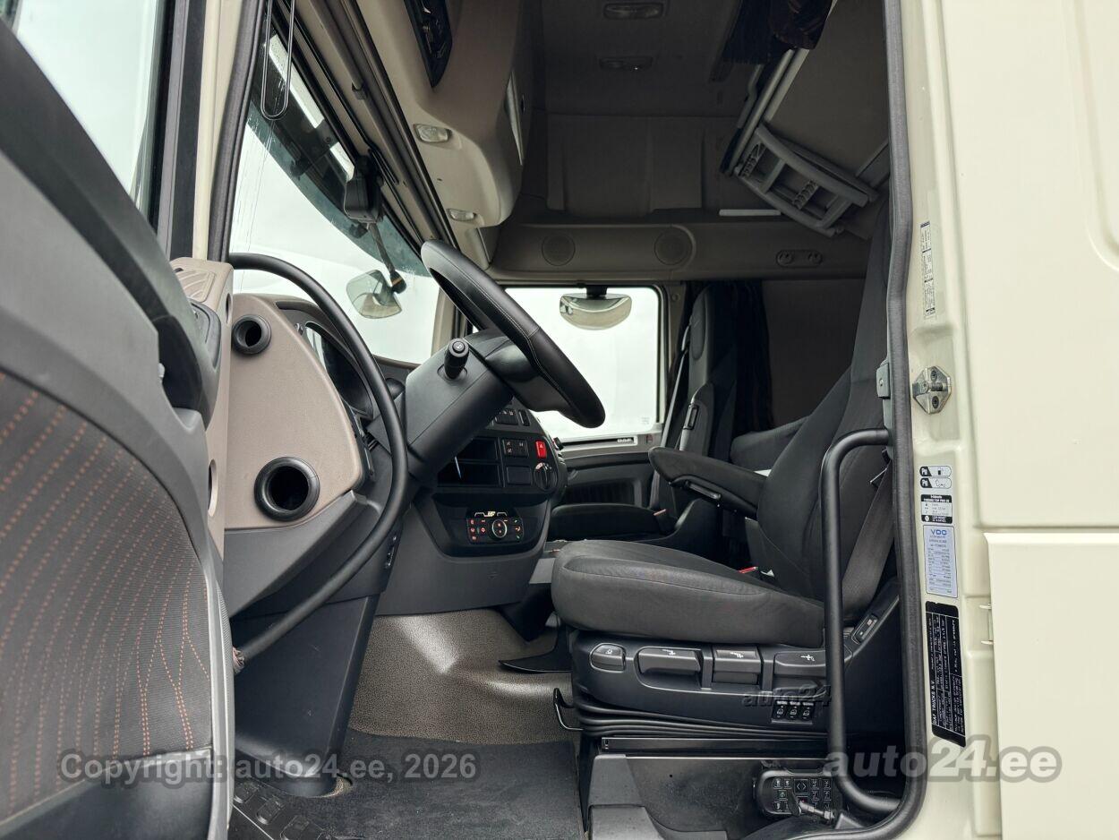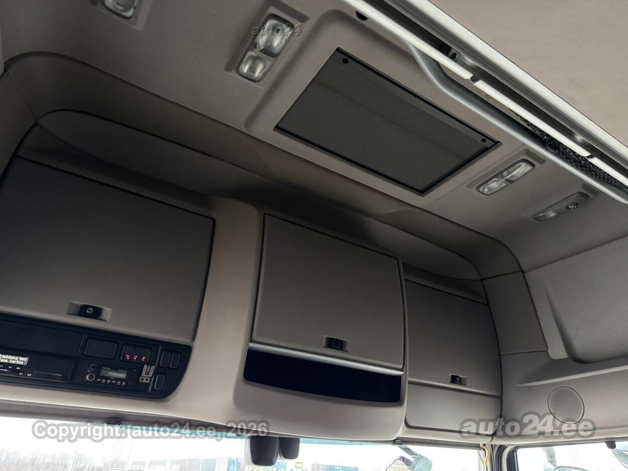 | Varustus: | automaatpidurdussüsteem, konditsioneer, roolivõimendi, kesklukustus (puldiga), ABS pidurid, signalisatsioon, stabiilsuskontroll, pidurdusjõukontroll, veojõukontroll, udutuled (eesmised, tagumine), tulede korrektor, lisatuled, LED, töötuli taga, reguleeritav roolisammas (kõrgus ja sügavus), multifunktsionaalne rool, stereo (originaal), autokompuuter, CB raadio, tekstiilpolster, 1x õhuga reguleeritav iste, 1x istmesoojendused, elektrilised välispeeglid (soojendusega), 2x elektrilised akende tõstukid, katuseluuk (klaasist, elektriline), püsikiiruse hoidja (eessõitjaga distantsi hoidev), päikesesirm, salongi eelsoojendus, salongi lisasoojendus, seadmete juhtpult taga, kiirusepiiraja, katusespoiler, küljeuks, reisiarvesti, reguleeritav vedrustus (kõrgus), välistemperatuuri näidik, sõidumeerik, külmik, seisusoojendus, MX-Mootoripidur |