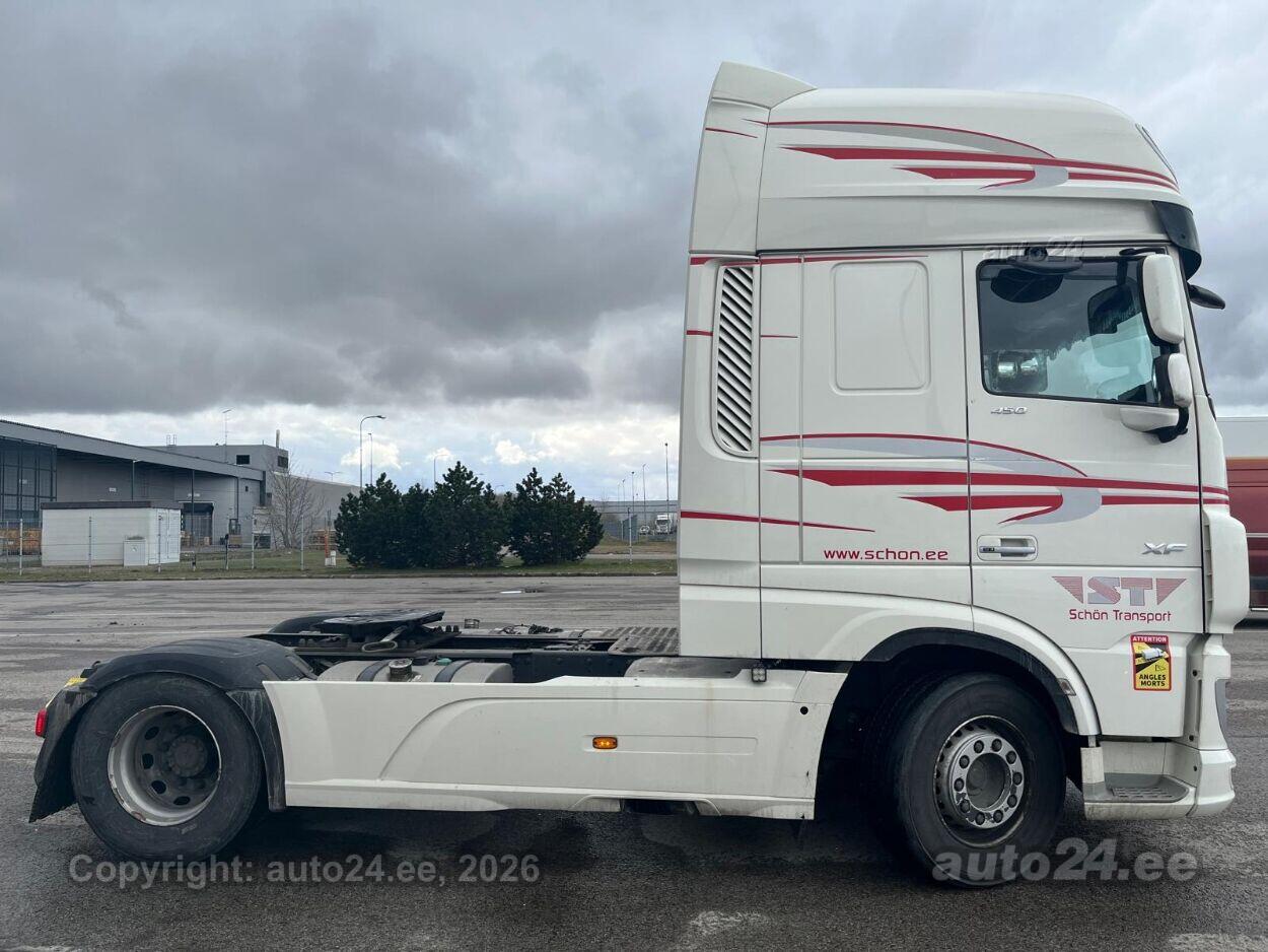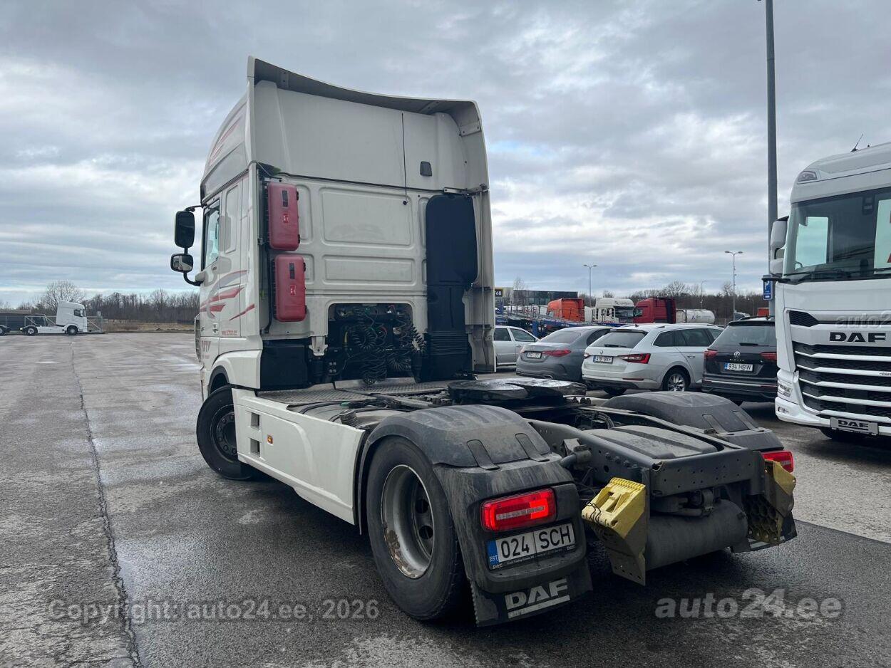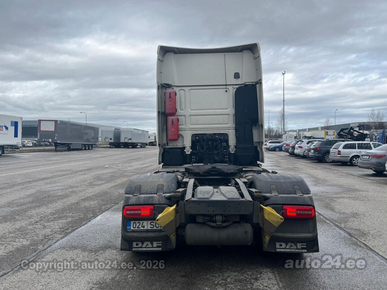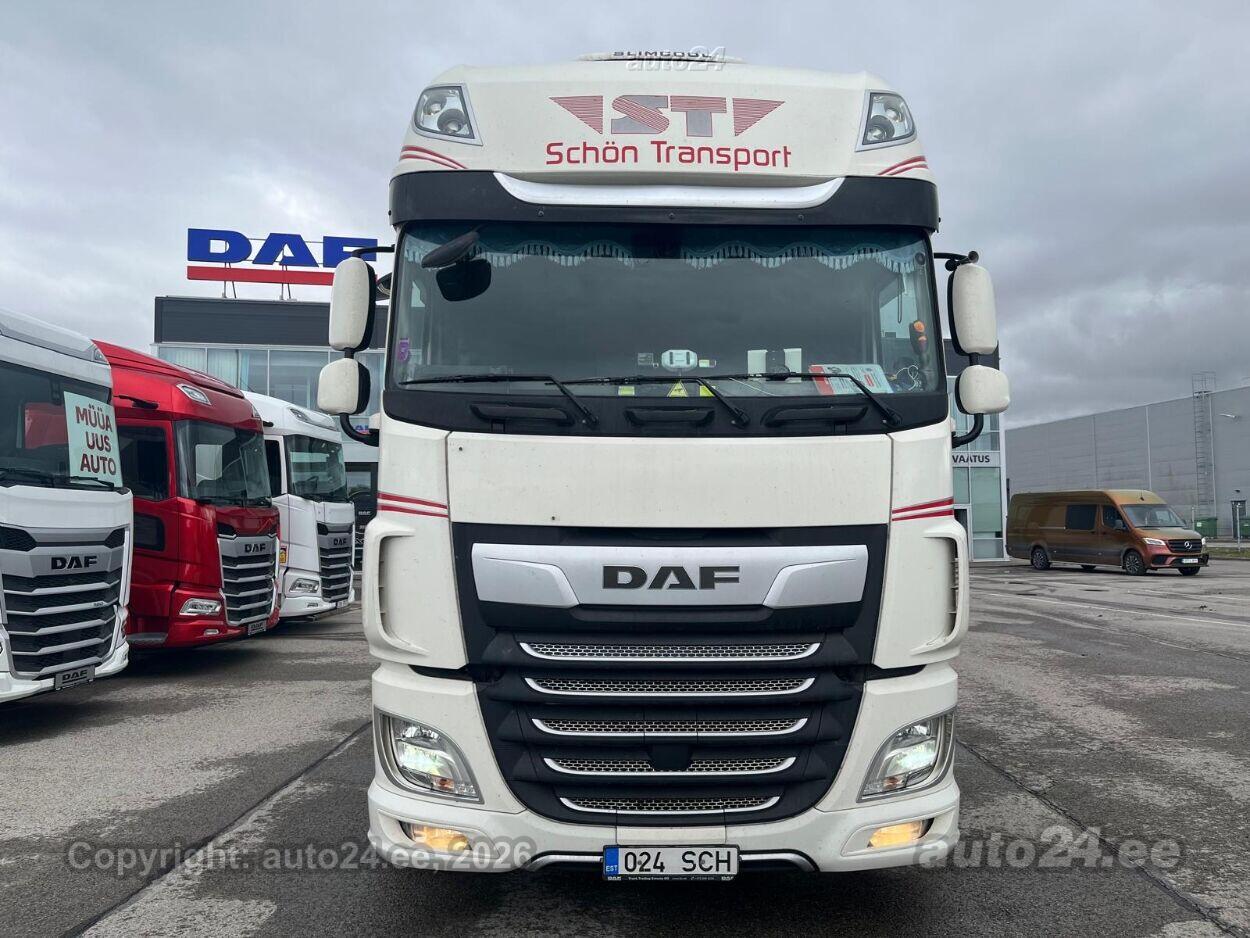 | Varustus: | kliimaautomaatik, automaatpidurdussüsteem, roolivõimendi, kesklukustus (puldiga), ABS pidurid, immobilisaator, stabiilsuskontroll, pidurdusjõukontroll, veojõukontroll, allasõidutõke, udutuled (eesmised, tagumine), tulede korrektor, lisatuled, LED (päevatuled, tagatuled, lähituled, kaugtuled), päevasõidutulede automaatne lülitus, töötuli taga, rehvirõhu kontrollsüsteem, reguleeritav roolisammas (kõrgus ja sügavus), multifunktsionaalne rool, stereo, autokompuuter, CB raadio, tekstiilpolster, õhuga reguleeritav iste, istmesoojendused, elektrilised välispeeglid (soojendusega), elektrilised akende tõstukid, katuseluuk, püsikiiruse hoidja (eessõitjaga distantsi hoidev), päikesesirm, salongi lisasoojendus, autonoomne soojendus, pingemuundur, kiirusepiiraja, L-pakett, S-pakett, katusespoiler, reisiarvesti, reguleeritav vedrustus (elektriliselt, kõrgus), välistemperatuuri näidik, sõidumeerik, külmik, keskkonnanõuetele vastav, DAF Night Lock, Seisukliima |