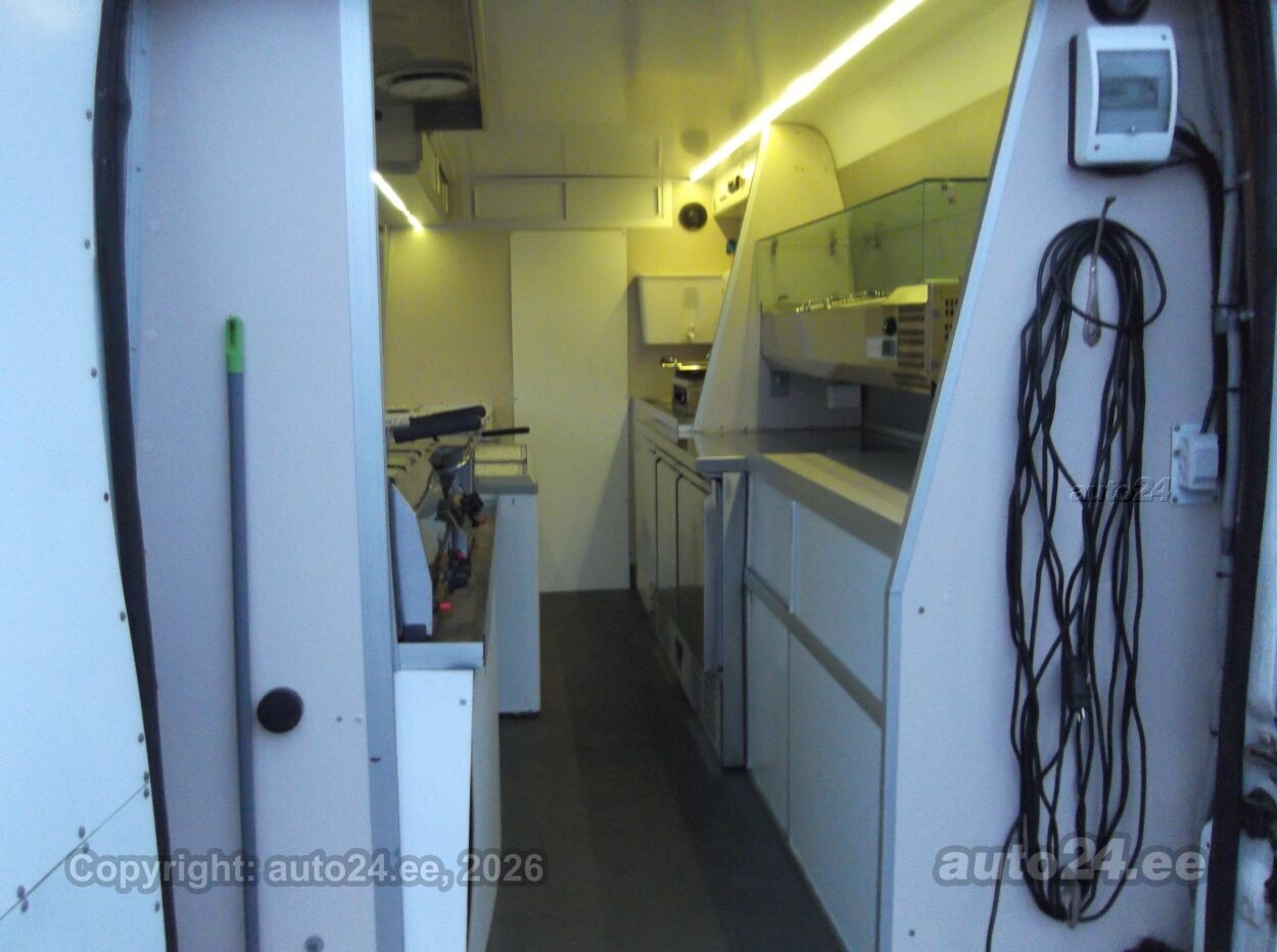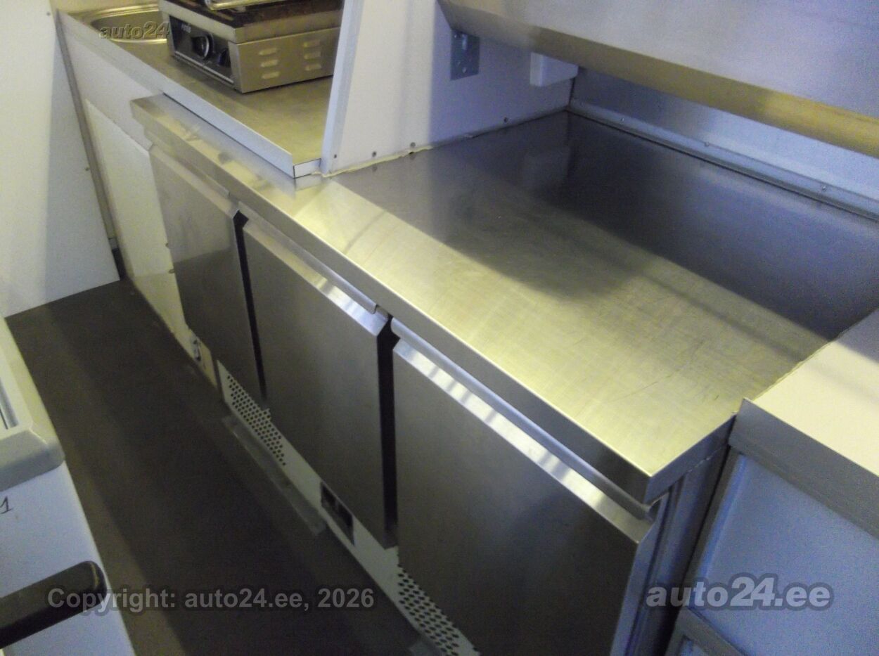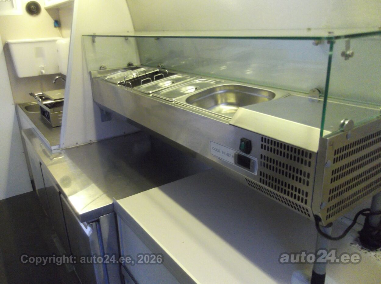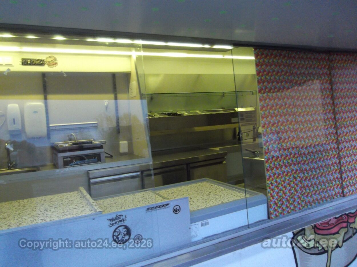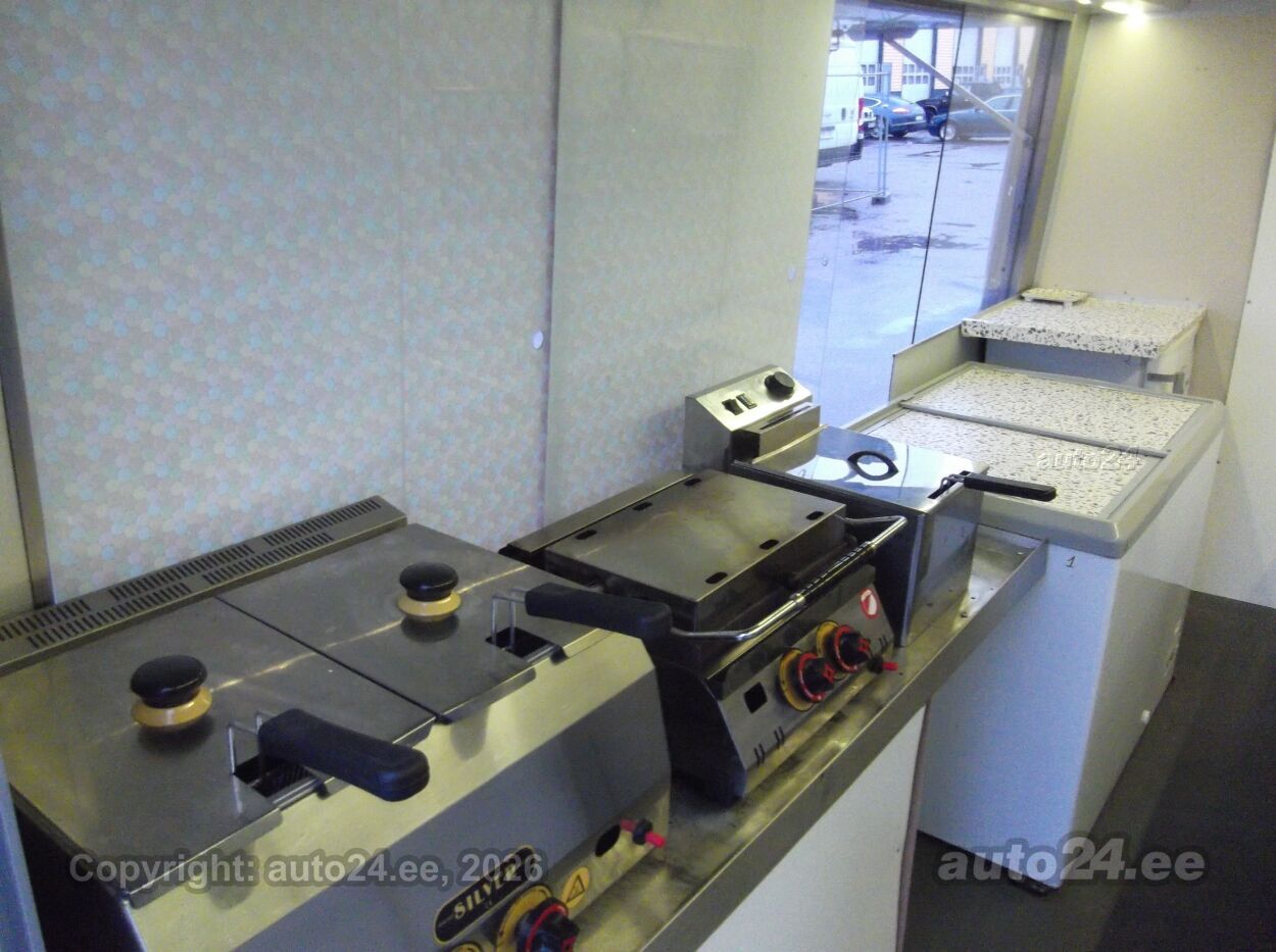 Vahetuse võimalus Asjalik toiduauto, korraliku varustusega köögiosa! Sügavkülmik, 2 erinevat tavakülmikut, salatikülmik, erinevad grillid ja fritüülid, osa köögitehnikat töötab 220 V pealt( olemas ka voolumõõtja, kui vaja kuskil kellegile tarbimise eest tasuda), osa tehnikat aga töötab gaasi (LPG ) pealt, 40 l. gaasipaak, mida saab tanklas täita, kraanikauss koos elektriboileriga ja reovee paagiga, ventilatsioonikubu, on peal ka transformaator mis teeb 12V -220 voldiks, müügiakna klaasid lükatavad vastavalt vajadusele, jne jne . .. hea võimalus alustada oma väikse toiduäriga ;) ON olemas tervisekaitse luba!