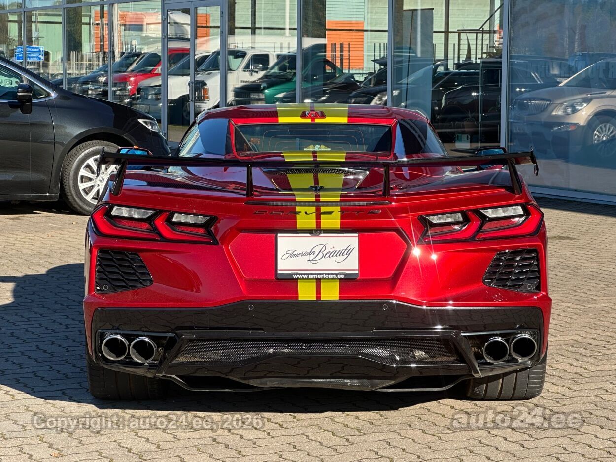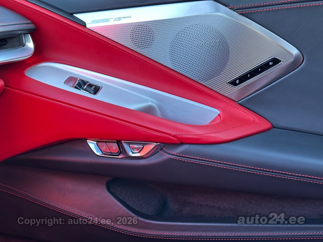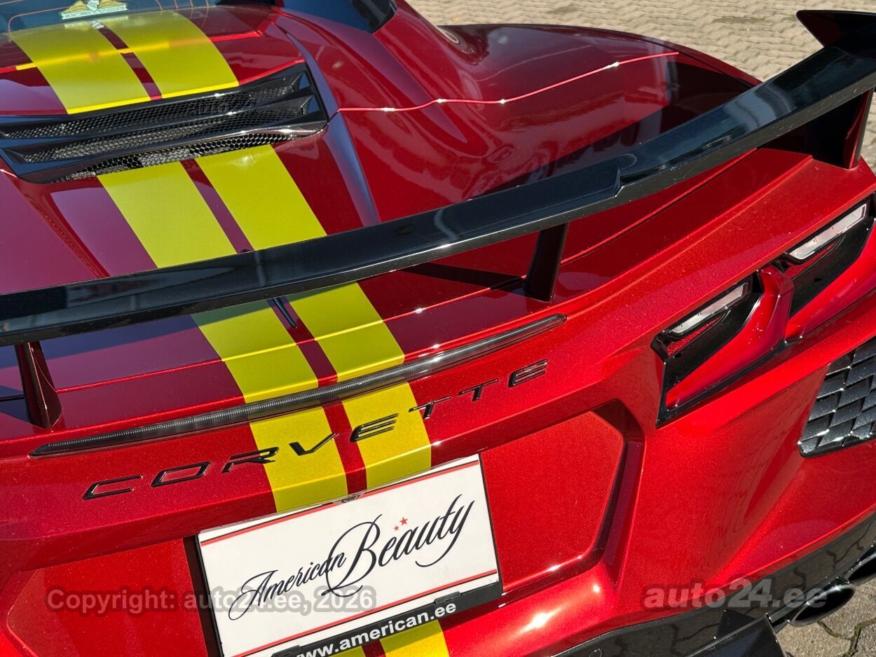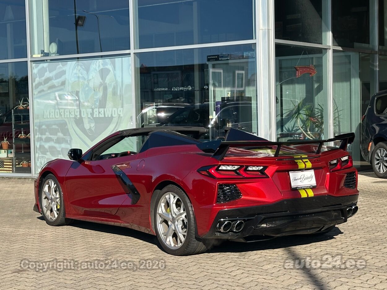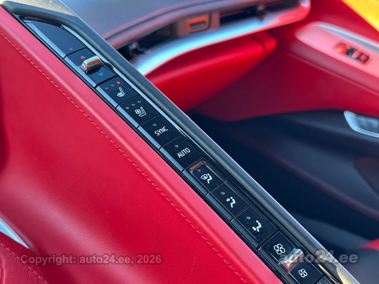 reguleeritav vedrustus (elektriliselt, jäikus), välistemperatuuri näidik, Z51 Performance package, Front lift adjustable height with memory, Z51 performance suspension, 19/20" Sterling silver painted aluminum wheels, Convertible top, carbon flash-painted nacelles and body-colour roof, Edge Yellow full length dual racing stripes, Yellow calipers and seat belts, Two-tone seats, BORLA Performance Cat-Back exhaust upgrade system (väärtus 5000 EUR)