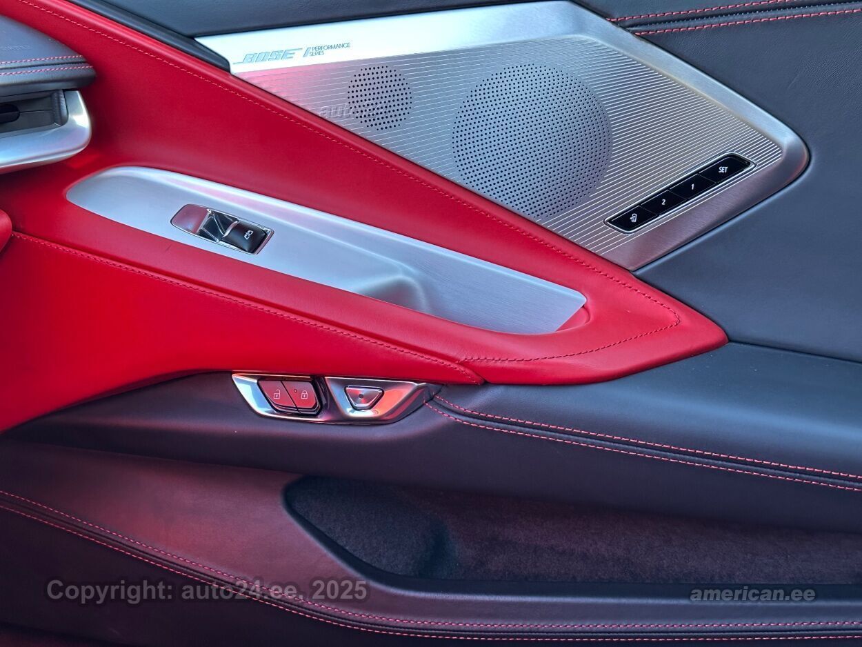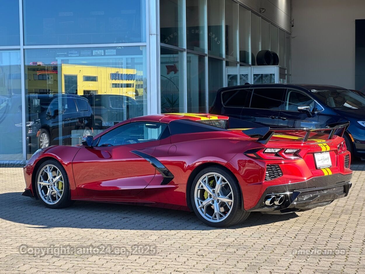 reguleeritav vedrustus (elektriliselt, jäikus), välistemperatuuri näidik, Z51 Performance package, Front lift adjustable height with memory, Z51 performance suspension, 19/20" Sterling silver painted aluminum wheels, Convertible top, carbon flash-painted nacelles and body-colour roof, Edge Yellow full length dual racing stripes, Yellow calipers and seat belts, Two-tone seats, BORLA Performance Cat-Back exhaust upgrade system (väärtus 5000 EUR)