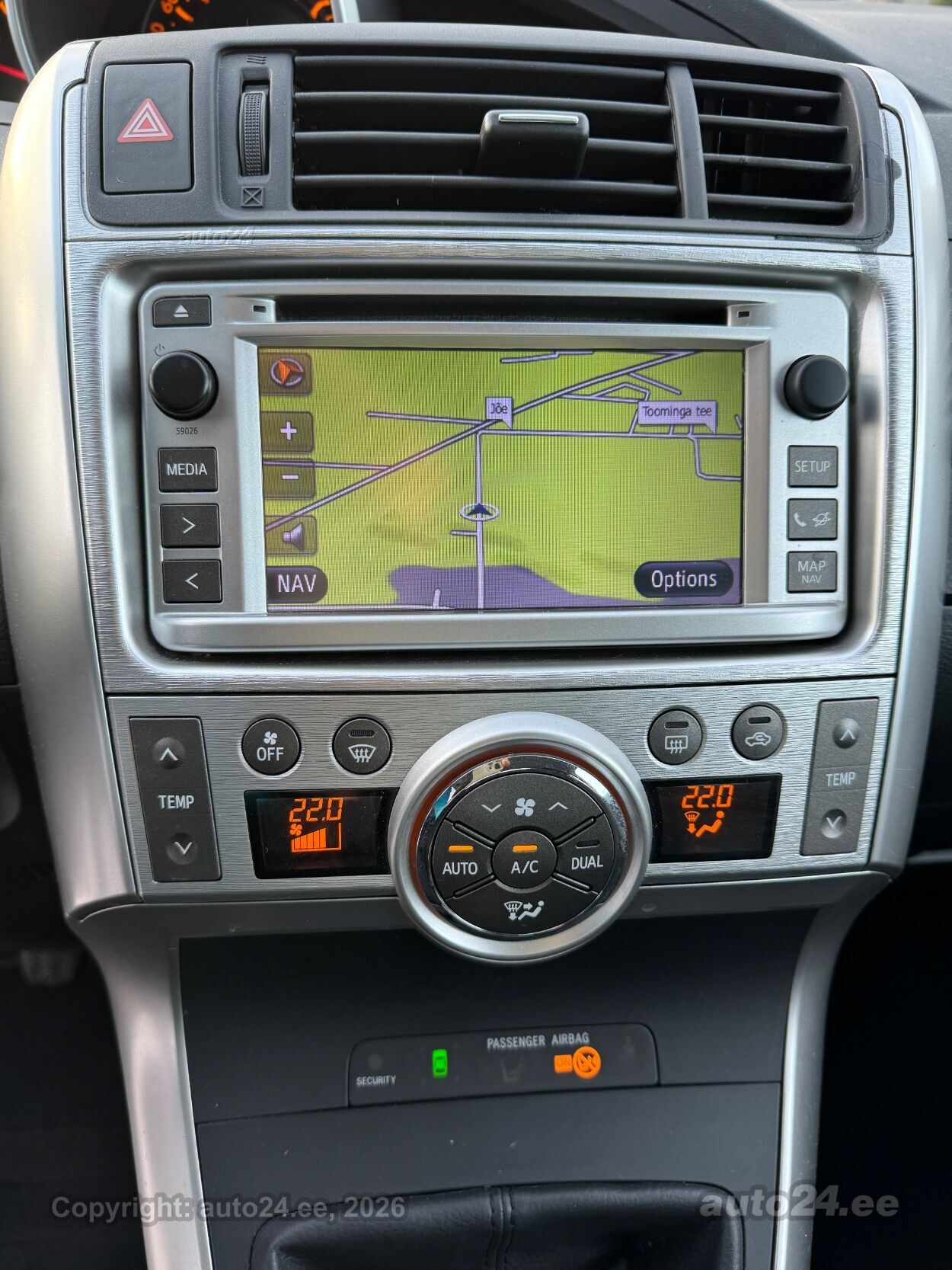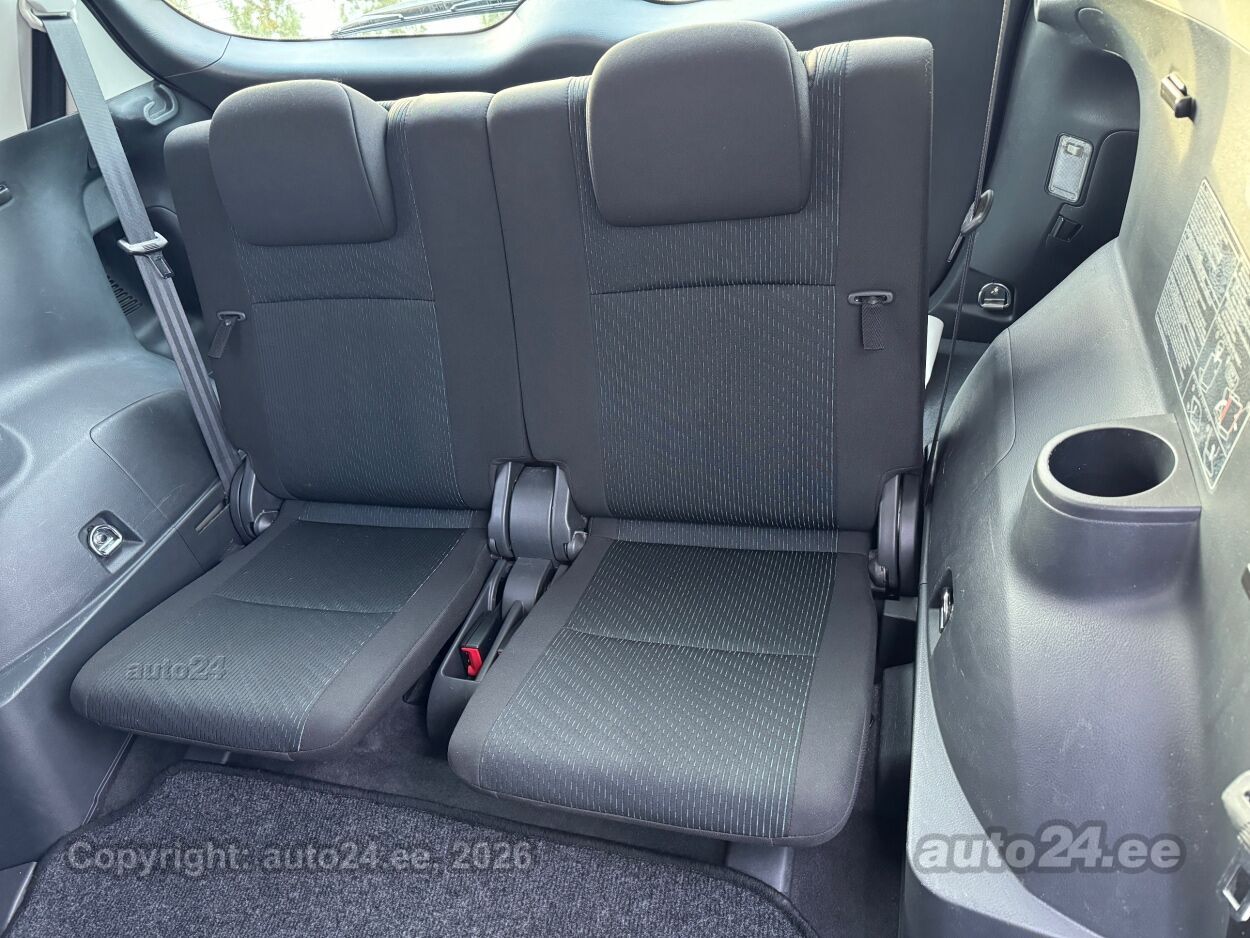 kliimaautomaatik, roolivõimendi, kesklukustus (puldiga), ABS pidurid, 6x turvapadi, lisapidurituli, stabiilsuskontroll, pidurdusjõukontroll, ESP veojõukontroll, turvavööde eelpingutid esiistmetel, ISOFIX lasteistme kinnitus (taga), kõrvalistuja turvapadja väljalülitamise võimalus, udutuled (eesmised, tagumine), tulede korrektor, M+S talverehvid (lamellrehvid), valuveljed (16, TOYOTA), reguleeritav roolisammas (kõrgus ja sügavus), multifunktsionaalne rool, nahkkattega rool, stereo (CD, MP3, USB pesaga, originaal), kõlarid, ekraan (ees), navigatsiooniseade (kaardiga), autokompuuter, käed vabad süsteem, iluliistud salongis, jalamatid (tekstiilist), topsihoidjad (ees), tekstiilpolster, istmed reguleeritava kõrgusega (juhiiste), tagaistme seljatugi allaklapitav, elektrilised välispeeglid (soojendusega), 4x elektrilised akende tõstukid, toonitud klaasid, püsikiiruse hoidja, 2x peeglid päikesesirmides (valgustusega), kohtvalgustid, parkimisandurid (ees, taga), parkimiskaamera, Coming-/Leaving-Home funktsioon, tagaspoiler, 12v pistikupesad, veokonks, tagaklaasi soojendus, välistemperatuuri näidik, tagaklaasi puhasti, 7 KOHTA, |