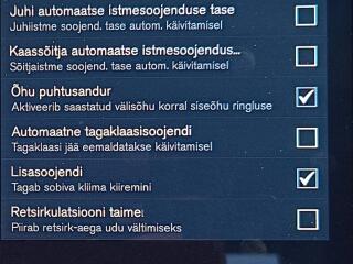 Varustus: INTELLI SAFE automaatpidurdussüsteem, roolivõimendi, kesklukustus, ABS pidurid, elektrooniline seisupidur, turvapadi, turvakardinad, stabiilsuskontroll, CITY SAFETY kokkupõrget ennetav pidurisüsteem, pidurdusjõukontroll, PILOT ASSIST sõiduraja hoidmise abisüsteem, liiklusmärkide tuvastus ja kuvamine, pimenurga hoiatus, veojõukontroll, vihmasensor, ISOFIX lasteistme kinnitus (taga), kõrvalistuja turvapadja väljalülitamise võimalus, udutuled, LED (päevatuled, tagatuled, lähituled, kaugtuled), esitulede pesurid, päevasõidutulede automaatne lülitus, kaugtulede ümberlülitamise assistent, talverehvid (lamellrehvid), valuveljed (19), reguleeritav roolisammas (kõrgus ja sügavus), multifunktsionaalne rool, nahkkattega rool, soojendusega rool, Harman/Kardon stereo, Harman/Kardon helivõimendi, Harman/Kardon kõlarid, Harman/Kardon subwoofer, Apple CarPlay, Android Auto, ekraan (ees), navigatsiooniseade, autokompuuter, käed vabad süsteem, iluliistud salongis (puitdekoor), tekstiilpolster, 2x elektriliselt reguleeritavad istmed (2x mäludega), 4x istmesoojendused, käetugi ees (laekaga), käetugi taga, elektrilised välispeeglid (soojendusega, kokkuklapitavad), 4x elektrilised akende tõstukid, toonitud klaasid, püsikiiruse hoidja (eessõitjaga distantsi hoidev), mootori eelsoojendus, salongi eelsoojendus, parkimisandurid (ees, taga), parkimiskaamera, info kuvamine esiklaasile, võtmeta avamine, võtmeta käivitus, start-stopp süsteem, 12v pistikupesad, tagaklaasi soojendus, FULL LED ACTIVE HIGH BEAM dünaamilised esituled, CROSS TRAFFIC ALERT ristuva liikluse tagurdus-hoiatussüsteem, VOLVO CARS mobiilne kaugjuhtimine