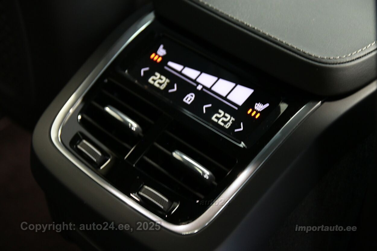climate control, Collision Warning / City Safety II automatic braking system, power steering (speed-proportional), central locking (with remote control), ABS brakes, 10x airbag, electric handbrake, head restraints (front, rear), side curtain airbags, immobilizer, third brake light, stability control, Collision Warning / City Safety II collision avoidance system, braking force regulator, lane assist, lane change assist, traffic sign assist, Blind Spot Detection, traction control, seatbelt pre-tighteners on front seats, rain sensor, ISOFIX child seat preparation (on rear seat), integrated booster seats, front passenger airbag isolation, auto-hold brakes, driver drowsiness detection system, cooling glove box, lighting pack, headlight washers, LED (daytime running lights, rear lights, low beam, high beam), special light switch-dim-dip-light, high-beam assistant, adaptive lights, summer tires, light alloy wheels (22", Diamond Cut Black Gloss), tire pressure monitoring system, steering wheel adjustment (height and depth), multifunctional steering wheel, leather steering wheel, racing steering wheel, heated steering wheel, Bowers & Wilkins Premium Sound Multimedia car stereo (MP3, with USB interface, original), stereo amplifier, speakers, subwoofer, Apple CarPlay, Android Auto, Android Google Navi- ja multimeediasüsteem + 360k panoraamkaamera screen (in front), navigation system (with map, with voice recognition), onboard computer, Volvo Bluetooth hands free, Innovation / Metal Mesh fine laths inside saloon, pockets on backside of the front seats, interior mats (textile), cup holders, Sportseats Agnes Nappa Charcoal leather interior, 2x electrically adjustable seats (2x with memory), adjustable seat height (driver's seat, front passenger seat), 4x seat heating, adjustable backrest shape (driver's seat, front passenger seat), front armrest (with compartment), rear armrest (with compartment), down folding back rest, electrically adjustable mirrors (heated mirrors, folding, with memory), 4x power windows, tinted windows, panoraam sunroof (glass, electric), cruise control (keep the distance to the vehicle in front), panorama glass roof, 2x mirrors in sunshields (enlighted), 2x door curtains, HVCH engine pre-heating, interior pre-heating, rear seat climate control, automatic anti-dazzle mirrors (inner, outer), inside illuminated doors, spot lights, parking aid (front, rear), parking camera (360), Coming-/Leaving-Home system, virtual cockpit, head-up display, wireless charging, rear spoiler, keyless entry, keyless start, start-stop system, ASSYST, 12v power outlet, adaptive suspension, adjustable suspension (stiffness, height), electrical tailgate opening system (foot-activated, remote), luggage cover, roof railings, saloon and luggage department isolation net, tow hitch (electrical), trailer stability assistant, rear window heating, outside temperature display, rear window cleaner, MUDELIAASTA 2025, FULL OPTON - KÕIK LISAD, 7-ISTEKOHTA, XENIUM PACK, INTELLISAFE PRO PACK, BUSINESS PACK PRO, VERSATILITY PACK, LIGHT PACK, WINTER PACK PRO, TEHASE WEBASTO KALENDRIGA + VOLVO ON-CALL, SOOJENDUSEGA ROOL, SALONGIÕHU IONISAATOR/PUHASTUSSÜSTEEM, FOUR-C ADAPTIIVNE ÕHKVEDRUSTUS, KEYLESS DRIVE VÕTMEVABA SISENEMINE JA KÄIVITUS, BOWERS & WILKINS PREMIUM SOUND, GOOGLE NAVI- JA MULTIMEEDIASÜSTEEM, 360K PANORAAMKAAMERA, INSCRIPTION NAHATATUD ARMATUUR JA UKSEPOLSTRID, NUTITELEFONI JUHTMEVABA INDUKTIIVLAADIMINE, PILOT ASSIST - SEMI AUTONOMOUS DRIVE, STOP&GO AKTIIVNE UMMIKUASSISTENT, PANORAAM KATUSELUUK, HEAD-UP DISPLAY INFO KUVAMINE ESIKLAASILE, FULL LED KURVITULED, SPORTSEATS AGNES NAPPA CHARCOAL, 2X ELEKTRILISED MÄLUDEGA ESIISTMED, ELEKTRILISELT REGULEERITAV NIMMETUGI JA ISTMEPADI, PÄIKESEKARDINAD KÜLJEKLAASIDEL, DRIVE MODE SÕIDUSEADETE VALIK, 4-TSOONIGA KLIIMASEADE, INTELLISAFE PRO PACK, INTELLISAFE ASSIST, ACC ADAPTIIVNE PÜSIKIIRUSHOIDIK, PILOT ASSIST - POOLAUTONOOMNE JUHTIMISSÜSTEEM, LANE KEEPING AID (LKA) - AKTIIVNE SÕIDURAJA ABISÜSTEEM, DISTANCE WARNING - VAHEKAUGUSE HOIATUS, TRAFFIC SIGN INFORMATION - LIIKLUSMÄRKIDE INFO KUVAMINE, INTELLISAFE SURROUND, BLIS - PIMEALA INFOSÜSTEEM, LANE CHANGE MERGE AID (LCMA) - REAVAHETUS ABISÜSTEEM KIIRELT LÄHENEVATE SÕIDUKUTE HOIATUSEKS, CROSS TRAFFIC ALERT (CTA) - RISTUVA LIIKLUSE HOIATUS TAGURPIDI PARKIMISALAST VÄLJASÕITES HOIATAB RISTUVA SÕIDUKI, JALGRATTURI JA JALAKÄIJA EEST, REAR IMPACT COLLISION WARNING - TAGAOSA AVARIIHOIATUS, DIGITAALNE NÄIDIKUTABLOO, PARKIMISABI EES- TAGA JA KÜLGEDEL, SALONGIVALGUSTUS AMBIENT HIGH, ELEKTRILINE TAGALUUK KOMFORTAVAMISEGA, ELEKTRILINE VEOKONKS, 22" DIAMOND CUT BLACK VALUVELG |