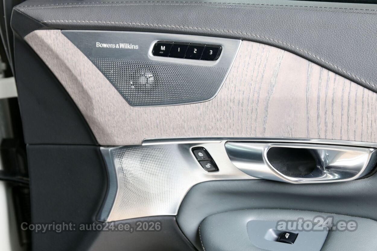 Varustus: kliimaautomaatik, automaatpidurdussüsteem, roolivõimendi (kiirustundlik), kesklukustus (puldiga), ABS pidurid, 10x turvapadi, elektrooniline seisupidur, peatoed (esiistmetel, tagaistmetel), turvakardinad, immobilisaator, lisapidurituli, stabiilsuskontroll, kokkupõrget ennetav pidurisüsteem, pidurdusjõukontroll, sõiduraja hoidmise abisüsteem, sõiduraja vahetamise abisüsteem, liiklusmärkide tuvastus ja kuvamine, pimenurga hoiatus, veojõukontroll, turvavööde eelpingutid esiistmetel, vihmasensor, ISOFIX lasteistme kinnitus (taga), integreeritud lapseiste, kõrvalistuja turvapadja väljalülitamise võimalus, automaatne paigalseismise funktsioon / mägistardi abi, juhi väsimuse tuvastamise süsteem, valgustuspakett, udutuled (eesmised, tagumine, kurvitule funktsiooniga), esitulede pesurid, LED (päevatuled, tagatuled, lähituled, kaugtuled), päevasõidutulede automaatne lülitus, kaugtulede ümberlülitamise assistent, kurvituled, suverehvid, valuveljed (22", Diamond Cut), rehvirõhu kontrollsüsteem, reguleeritav roolisammas (kõrgus ja sügavus), multifunktsionaalne rool, nahkkattega rool, soojendusega rool, Bowers & Wilkins Premium Sound Multimedia stereo (MP3, USB pesaga, originaal), helivõimendi, kõlarid, subwoofer, Apple CarPlay, Android Auto, Sensus Navi- ja multimeediasüsteem + 360k panoraamkaamera ekraan (ees), navigatsiooniseade (kaardiga, hääljuhtimisega), autokompuuter, Volvo Bluetooth käed vabad süsteem, iluliistud salongis (puitdekoor), taskud esiistmete seljatugedes, jalamatid (tekstiilist), topsihoidjad (ees, taga), tume laepolster, Luxury Seat Pack / Agnes Nappa Slate Grey / Perforeeritud nahk ventilatsiooni- ja massaažiga esiistmetes nahkpolster, 2x elektriliselt reguleeritavad istmed (2x mäludega), istmed reguleeritava kõrgusega (juhiiste, kõrvalistuja iste), 4x istmesoojendused, reguleeritava kumerusega seljatugi (juhiiste, kõrvalistuja iste), massaažifunktsiooniga istmed (juhil, kõrvalistmel), ventileeritavad istmed (ees), käetugi ees (laekaga), käetugi taga (laekaga), tagaistme seljatugi allaklapitav, Comfort istmed, elektrilised välispeeglid (soojendusega, kokkuklapitavad, mäluga), 4x elektrilised akende tõstukid, toonitud klaasid, panoraam katuseluuk (klaasist, elektriline), püsikiiruse hoidja (eessõitjaga distantsi hoidev), panoraamkatus (klaasist), 2x peeglid päikesesirmides (valgustusega), 2x rulookardinad ustel, Tehase Webasto kalendriga + On Call äpp mootori eelsoojendus, salongi eelsoojendus, eraldi kliimaseade tagaistmetele, automaatselt tumenevad peeglid (sees, väljas), uste sisevalgustus, kohtvalgustid, parkimisandurid (ees, taga), parkimiskaamera (360), Coming-/Leaving-Home funktsioon, digitaalne näidikutepaneel, info kuvamine esiklaasile, tagaspoiler, esispoiler, spoileriring, võtmeta avamine, võtmeta käivitus, start-stopp süsteem, reisiarvesti, 12v pistikupesad, õhkvedrustus, reguleeritav vedrustus (jäikus, kõrgus), pakiruumi avamine elektriliselt (jalaviipega, puldist), pagasikate, katusereelingud, salongi ja pakiruumi eraldusvõrk, veokonks (elektriline), haagise stabiliseerimissüsteem, tagaklaasi soojendus, välistemperatuuri näidik, lamineeritud topeltklaasid, tagaklaasi puhasti, CRYSTAL WHITE ERIVÄRV, FULL OPTON - KÕIK LISAD, XENIUM PACK, INTELLISAFE PRO PACK, BUSINESS PACK PRO, VERSATILITY PACK, LIGHT PACK, WINTER PACK PRO, TEHASE WEBASTO KALENDRIGA + VOLVO ON-CALL, SOOJENDUSEGA ROOL, FOUR-C ADAPTIIVNE ÕHKVEDRUSTUS, KEYLESS DRIVE VÕTMEVABA SISENEMINE JA KÄIVITUS, BOWERS & WILKINS PREMIUM SOUND, SENSUS NAVI- JA MULTIMEEDIASÜSTEEM, 360K PANORAAMKAAMERA, INSCRIPTION NAHATATUD ARMATUUR JA UKSEPOLSTRID, NUTITELEFONI JUHTMEVABA INDUKTIIVLAADIMINE, PILOT ASSIST - SEMI AUTONOMOUS DRIVE, STOP&GO AKTIIVNE UMMIKUASSISTENT, PANORAAM KATUSELUUK, HEAD-UP DISPLAY INFO KUVAMINE ESIKLAASILE, FULL LED KURVITULED, LUXURY SEAT PACK, AGNES NAPPA SLATE GRAY, PERFOREERITUD NAHK VENTILATSIOONI- JA MASSAAŽIGA ESIISTMETES, 2X ELEKTRILISED MÄLUDEGA ESIISTMED, ELEKTRILISELT REGULEERITAV NIMMETUGI JA ISTMEPADI, PÄIKESEKARDINAD KÜLJEKLAASIDEL, DRIVE MODE SÕIDUSEADETE VALIK, 4-TSOONIGA KLIIMASEADE, INTELLISAFE PRO PACK, INTELLISAFE ASSIST, ACC ADAPTIIVNE PÜSIKIIRUSHOIDIK, PILOT ASSIST - POOLAUTONOOMNE JUHTIMISSÜSTEEM, LANE KEEPING AID (LKA) - AKTIIVNE SÕIDURAJA ABISÜSTEEM, DISTANCE WARNING - VAHEKAUGUSE HOIATUS, TRAFFIC SIGN INFORMATION - LIIKLUSMÄRKIDE INFO KUVAMINE, INTELLISAFE SURROUND, BLIS - PIMEALA INFOSÜSTEEM, LANE CHANGE MERGE AID (LCMA) - REAVAHETUS ABISÜSTEEM KIIRELT LÄHENEVATE SÕIDUKUTE HOIATUSEKS, CROSS TRAFFIC ALERT (CTA) - RISTUVA LIIKLUSE HOIATUS TAGURPIDI PARKIMISALAST VÄLJASÕITES HOIATAB RISTUVA SÕIDUKI, JALGRATTURI JA JALAKÄIJA EEST, REAR IMPACT COLLISION WARNING - TAGAOSA AVARIIHOIATUS, DIGITAALNE NÄIDIKUTABLOO, SENSUS NAVIGATSIOONISÜSTEEM, PARKIMISABI EES- JA TAGA, SALONGIVALGUSTUS AMBIENT HIGH, ELEKTRILINE TAGALUUK KOMFORTAVAMISEGA, ELEKTRILINE VEOKONKS, 22" DIAMOND CUT VALUVELG