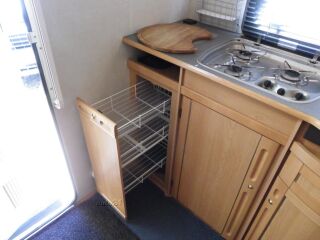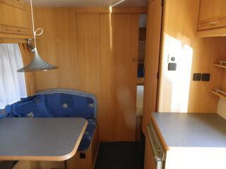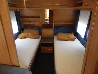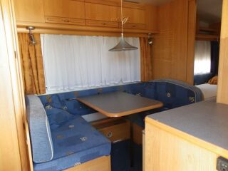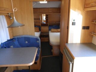 veluurpolster, tugijalad, gaasiahi, õhkkeskküte, gaasipliit (põletiga), valgustus (12v + 220v), välisvalgustus, duširuum, veepaak, 12v veepump, TV antenn, Truma vent, katuseluuk, termorulood akendel, võrkrulood, lükandsein, alaldi, astmelaud, valamu, külmik, topeltklaasid, WC, - SOOJAVEE BOILER, VALUVELJED |