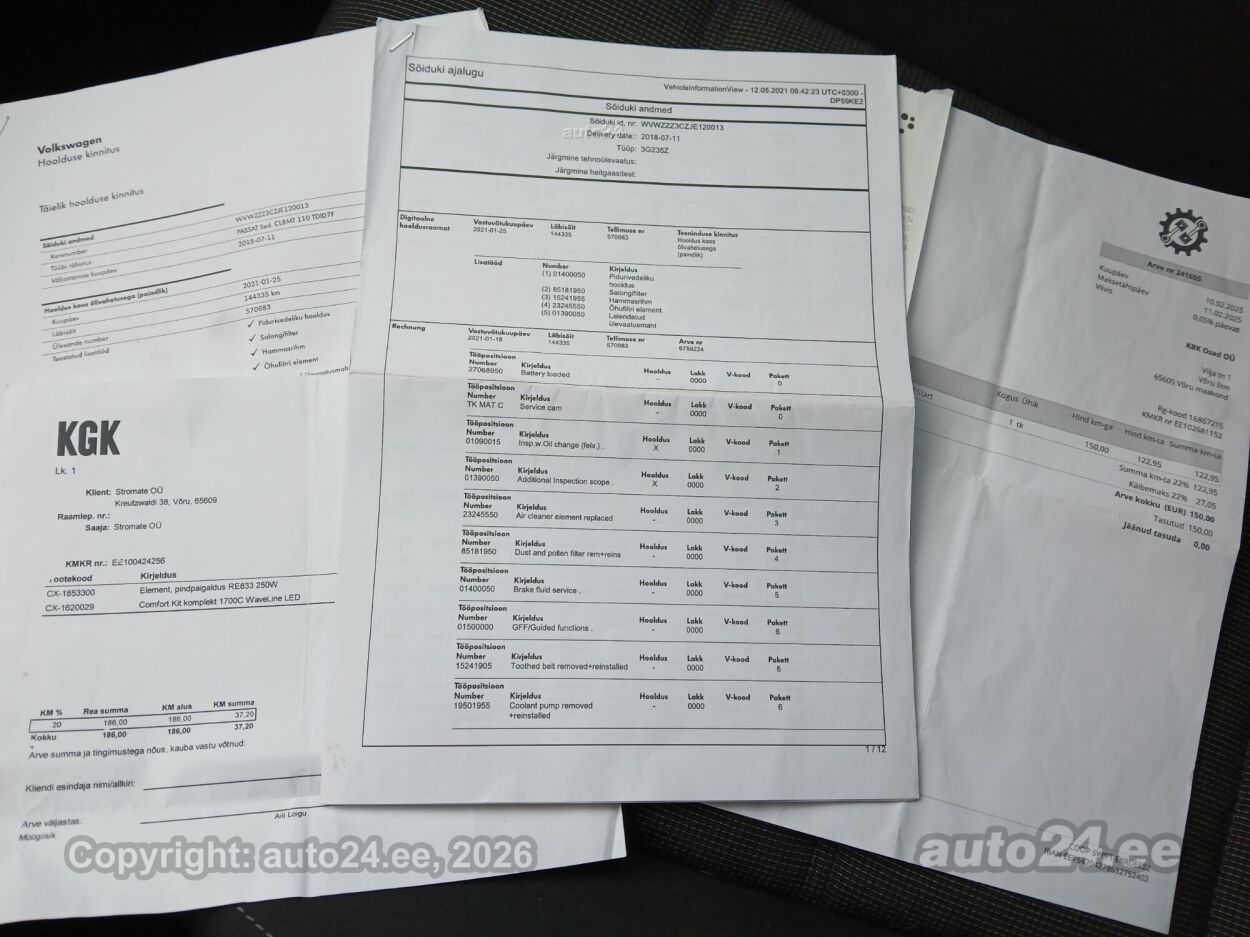 Eestis arvel, ülevaatus kuni 07.2026 Ostetud riigist: Eesti Sõiduki asukoht: Tartu, Eesti Väga heas korras ja avariivaba Passat. Tehtud hoolduste ja tööde kohta on väljavõtted ja arved olemas. Viimase pooleteise aasta jooksul on vahetatud hammasrihmakomplekt koos õlipumba rihmaga, eesmised pidurid, käigukastiõli, teostatud Crown korrosioonikaitse jne. Ka aku on vaid ca 1 aasta vana. Komisjonimüük |