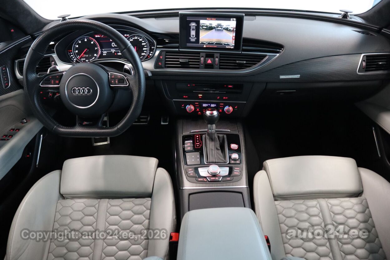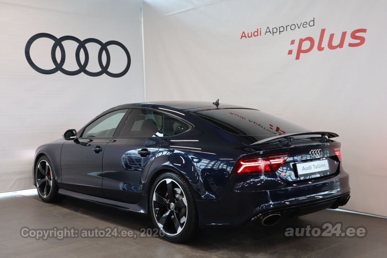 õhkvedrustus, start-stopp süsteem, 12v pistikupesad, välistemperatuuri näidik, tagaklaasi soojendus, pagasikate, pagasi võrk pakiruumis, kaubakinnituse konksud, reisiarvesti, "Audi pre sense REAR" koos "Audi side assist" - sõiduraja vahetamise abisüsteem, "Comfort key" - võtmeta avamis- ja lukustamissüsteem + sensoriga kontrollitav tagaluugi mugavus-avamine, Dekoorliistud salongis - musta värvi "Beaufort" puit kombineerituna alumiiniumiga, Disainipakett (eksterjöör) - matt alumiinium, sh täiendav alumiiniumoptika auto esi- ja tagaosas ning "quattro" logo auto esiosas, Esilaternad "Audi Matrix LED"-tehnoloogiaga, sh selektiivne kaugtulede valgusvihu reguleerimine ja dünaamilised suunatuled esi- ja tagalaternas, Istmepolster - nahk "Valcona" (kärjekujuliste õmblustega), sh nahaga kaetud istmete peatoed, käetugi esiistmete vahel, keskkonsooli alumine osa ja ukse paneel, Kõlarisüsteem "Bang & Olufsen Advanced Sound System" (kogu väljundvõimsusega 1200 vatti, 15 kõlarit, sh subwoofer), Laepolster, musta värvi "Alcantara", Pagasiruumi vahesein (ruloo), kauba kaitsmiseks päikese eest, Parkimisabi "Plus" koos kaameratega auto esi- ja tagaosas - akustiline hoiatustoon ja visuaalne pilt MMI ekraanil, Pidurisadulad värvitud kõrgläikega punast värvi, Servosulgur ustele - automaatne mittetäielikult sulgunud ukse sulgemine, Väljalaskesüsteem - "RS 7 Sport" (sportlikum heli ja kõrgläike musta värvi väljalasketorude otsad)