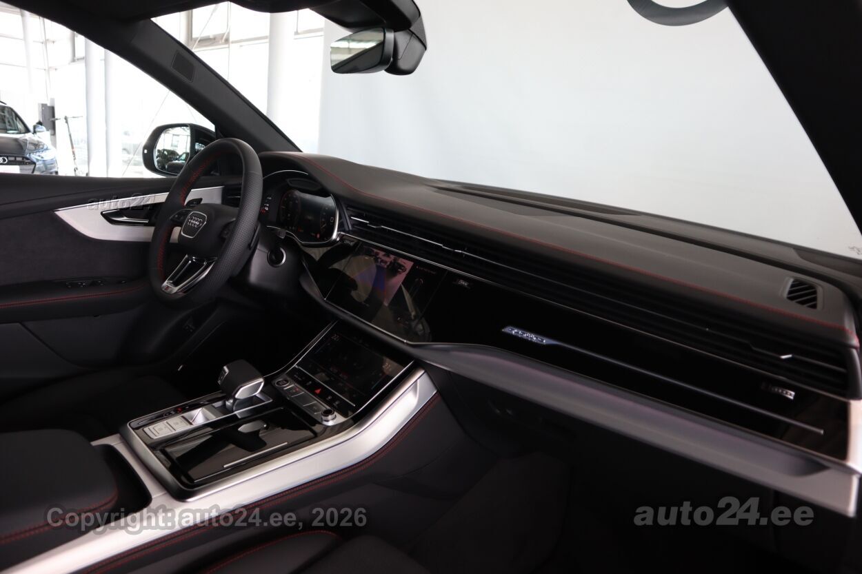 õhkvedrustus, välistemperatuuri näidik, tagaklaasi soojendus, pagasikate (automaatne), tagaklaasi puhasti, veokonks (elektriline, teisaldatav), reisiarvesti, "Convenience key" - võtmeta avamis- ja lukustamissüsteem, sh sensoriga kontrollitav pagasiruumiluugi mugavus-avamine ja elektriline pagasiruumi kate, Assistentpakett "City" - Audi side assist" koos "Audi pre sense BASIC and REAR" ja ristmikuassistent (ristisuunalise liikluse hoiatus), Assistentpakett "Tour" - adaptiivne püsikiirushoidja, sõidurajalt kõrvalekaldumise hoiatussüsteem automaatse pidurdamisega hädaolukorras, Disainipakett (eksterjöör) - "Black Appearance package Plus" - musta värvi elemendid auto eksterjööris, tähised iluvõrel ja tagaluugil ning Audi rõngad ees ja taga, Esilaternad "HD Audi Matrix LED"- tehnoloogiaga, sh selektiivne kaugtulede valgusvihu reguleerimine ja dünaamilised suunatuled esi-ja tagalaternas, Haakeseade (elektriliselt juhitav) - nupuvajutusega pagasiruumist võimalik seadistada auto valmis haagise vedamiseks, Kõlarisüsteem "Bang & Olufsen Premium Sound System 3D kõlaga" - 17 kõlarit, 16 kanaliga helivõimendi koguväljundvõimsusega 730 vatti, Laiendatud nahapakett - III, "Fine nappa" nahkpolstriga kaetud osaliselt keskkonsool, uste käetoed, uste ja armatuuri ülaosa, sh päikeserulood, Meedialiides - "Audi application store and smartphone interface" , Parkimiskaamera, Peeglid - elektriliselt kokkuklapitavad ja automaatselt tumenevad ning mälu-funktsiooniga välispeeglid, S line istmepolstri lisa, punased õmblused - sh punased õmblused istmetel, uksepolstritel, roolil ja keskkonsoolil ning punased turvavööd, S line sportpakett, sh sportistmed (Q1D), adaptiivne õhkvedrustus - sport (2MA), tume laepolster (6NQ) ja S line logod , S line õhkvedrustus "Adaptive air suspension", elektrooniliselt seadistatav õhkvedrustus, Seisusoojendus-/jahutus "Comfort" - võimaldab taimeri kaudu käivitada soojenduse või ventilatsiooni (peeglite, klaaside, rooli ja istmesoojenduse aktiveerimine), Servosulgur ustele - automaatne mittetäielikult sulgunud ukse sulgemine, Tagalaternad "Digital OLED", Valgustuspakett II - "Ambient Lighting plus"