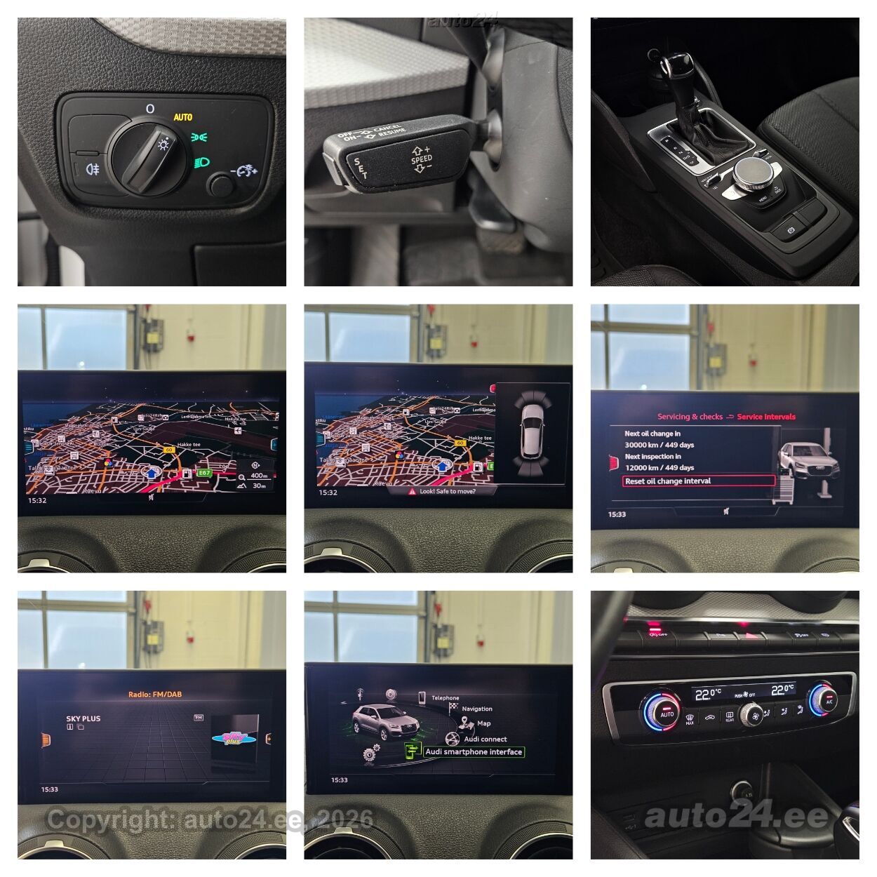 stereo (CD, USB pesaga, mälukaardi pesaga, originaal), kõlarid, Apple CarPlay, Android Auto, ekraan (ees), navigatsiooniseade (kaardiga), autokompuuter, käed vabad süsteem