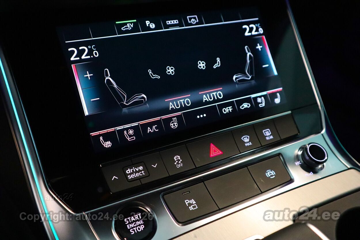 katusereelingud, 12v pistikupesad, välistemperatuuri näidik, tagaklaasi soojendus, pagasikate (automaatne), pagasi võrk pakiruumis, kaubakinnituse konksud, tagaklaasi puhasti, veokonks (elektriline), reisiarvesti, Klaasid - külgmised klaasid topeltklaasid (parandamaks auto sisemist müratset), Valgustuspakett II "Ambient Lighting plus" - "Ambient" ja kontuurvalgustus kogu autos (võimalik valida 30 värvitooni vahel), Panipaigapakett - kaks topsihoidjat tagaistme käetoes, kinnitusvõimalused pagasiruumi põrandal (võrk) ja kaks 12V pistikupesa auto tagaosas, Esilaternad - "HD Matrix LED" koos "Audi Laser light", sh selektiivne kaugtulede valgusvihu reguleerimine, dünaamilised suunatuled esi- ja tagalaternas ning esilaternate pesuseade, Assistentpakett "City" - "Audi lane change warning" koos "Audi pre sense and REAR" ja ristmikuassistent (ristisuunalise liikluse hoiatus auto esi-ja tagaosas), Assistentpakett "Tour" - adaptiivne püsikiirushoidja, sõidurajalt kõrvalekaldumise hoiatussüsteem automaatse pidurdamisega hädaolukorras ja liiklusmärkide tuvastus, Servosulgur ustele - automaatne mittetäielikult sulgunud ukse sulgemine, Telefon ja kommunikatsioon - "Audi phone box" koos LTE-toega, universaalne telefonialus käetoes esiistmete vahel võimaldamaks telefonikõnesid läbi "Bluetooth" ühenduse, Kõlarisüsteem "Bang & Olufsen Premium Sound System 3D kõlaga" - 16 kõlarit, 15 kanaliga helivõimendi kogu väljundvõimsusega 705 vatti, Klaasipuhastajate süsteem - adaptiivne (klaasipuhastaja hoobadesse integreeritud soojendusega pesudüüsid), Parkimisabi - parkimisassistent - arvutab optimaalseima võimaluse parkimiseks, võttes üle roolijuhtimise ja juht vajutab ainult gaasi- ja piduripedaali, Rooliratas - sportrool käiguvahetusfunktsiooniga ja elektrilise soojendusega, Haakeseade (manuaalselt seadistatav), sh haagise assistent, Pikendatud tehasegarantii - 5 aastat (2 aastat + 3 aastat lisagarantiid), läbisõiduni 100 000 km