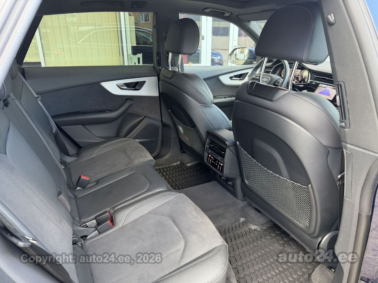 kliimaautomaatik, automaatpidurdussüsteem, roolivõimendi (kiirustundlik), kesklukustus (puldiga), ABS pidurid, elektrooniline seisupidur, turvapadi, turvakardinad, peatoed (esiistmetel, tagaistmetel), immobilisaator, lisapidurituli, stabiilsuskontroll, kokkupõrget ennetav pidurisüsteem, jalakäija ohutusfunktsiooniga kapott, sõiduraja hoidmise abisüsteem, pidurdusjõukontroll, sõiduraja vahetamise abisüsteem, liiklusmärkide tuvastus ja kuvamine, pimenurga hoiatus, veojõukontroll, turvavööde eelpingutid esiistmetel, vihmasensor, ISOFIX lasteistme kinnitus (ees, taga), kõrvalistuja turvapadja väljalülitamise võimalus, automaatne paigalseismise funktsioon / mägistardi abi, mägipidur, udutuled (eesmised, tagumine), LED (päevatuled, tagatuled, lähituled, kaugtuled), esitulede pesurid, päevasõidutulede automaatne lülitus, kaugtulede ümberlülitamise assistent, talverehvid (lamellrehvid), valuveljed (22, Originaal), autoga antakse kaasa (suverehvid), rehvirõhu kontrollsüsteem, reguleeritav roolisammas (kõrgus ja sügavus), multifunktsionaalne rool, nahkkattega rool, sportrool, stereo (originaal), kõlarid, Apple CarPlay, ekraan (ees), navigatsiooniseade (kaardiga), autokompuuter, käed vabad süsteem, iluliistud salongis, jalamatid (tekstiilist, kummist), topsihoidjad (ees, taga), tume laepolster, Alcantara poolnahkpolster, 2x elektriliselt reguleeritavad istmed, istmed reguleeritava kõrgusega (juhiiste, kõrvalistuja iste), istmesoojendused, käetugi ees (laekaga), käetugi taga (laekaga), tagaistme seljatugi allaklapitav, elektrilised välispeeglid (soojendusega, kokkuklapitavad), 4x elektrilised akende tõstukid, toonitud klaasid, katuseluuk (klaasist, elektriline), panoraamkatus (klaasist), püsikiiruse hoidja (eessõitjaga distantsi hoidev), peeglid päikesesirmides, puldiga mootori eelsoojendus, puldiga salongi eelsoojendus, kohtvalgustid, parkimisandurid (ees, taga), automaatse parkimise funktsioon, parkimiskaamera, digitaalne näidikutepaneel, võtmeta avamine, võtmeta käivitus, start-stopp süsteem, reguleeritav vedrustus, pakiruumi avamine elektriliselt (jalaviipega, puldist), pagasikate, katusereelingud, katuseraam, tagaklaasi soojendus, välistemperatuuri näidik, Audi connect võti, Komfortkliimaseade Deluxe nelja tsooniga, Kõlarisüsteem Bang&Olufsen, Servosulgur ustele, Esilaternad HD Audi Matrix LED, Pikendatud tehasegarantii 5 aastat või läbisõiduni 150 000km.