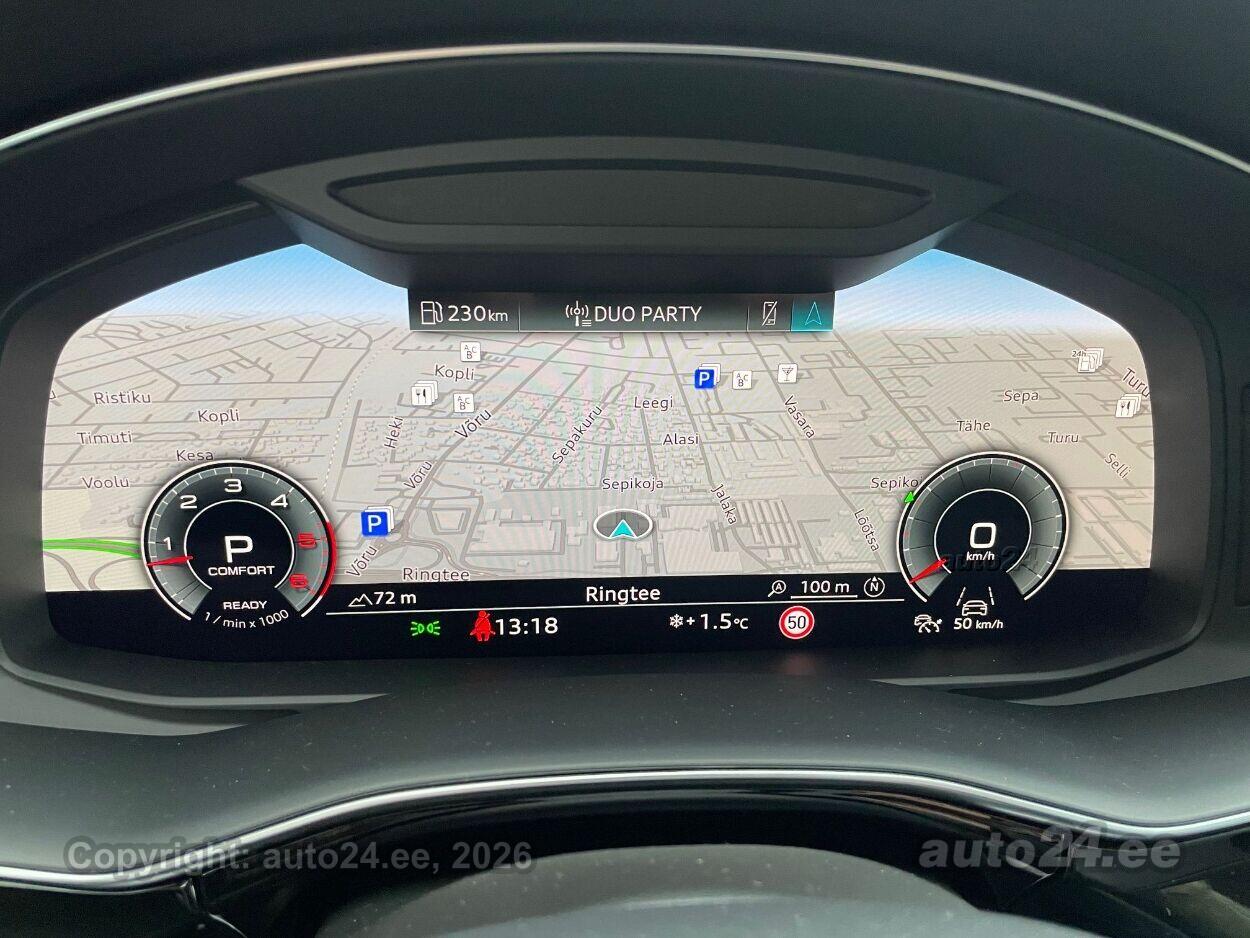 kliimaautomaatik, automaatpidurdussüsteem, roolivõimendi (kiirustundlik), kesklukustus (puldiga), ABS pidurid, elektrooniline seisupidur, turvapadi, peatoed (esiistmetel, tagaistmetel), turvakardinad, immobilisaator, lisapidurituli, stabiilsuskontroll, kokkupõrget ennetav pidurisüsteem, jalakäija ohutusfunktsiooniga kapott, pidurdusjõukontroll, sõiduraja hoidmise abisüsteem, sõiduraja vahetamise abisüsteem, liiklusmärkide tuvastus ja kuvamine, pimenurga hoiatus, veojõukontroll, turvavööde eelpingutid esiistmetel, vihmasensor, ISOFIX lasteistme kinnitus (ees, taga), automaatne paigalseismise funktsioon / mägistardi abi, kõrvalistuja turvapadja väljalülitamise võimalus, mägipidur, udutuled (eesmised, tagumine), LED (päevatuled, tagatuled, lähituled, kaugtuled), esitulede pesurid, päevasõidutulede automaatne lülitus, kaugtulede ümberlülitamise assistent, talverehvid (lamellrehvid), valuveljed (22, Originaal), autoga antakse kaasa (suverehvid), reguleeritav roolisammas (kõrgus ja sügavus), multifunktsionaalne rool, nahkkattega rool, sportrool, stereo (originaal), kõlarid, Apple CarPlay, ekraan (ees), navigatsiooniseade (kaardiga), autokompuuter, käed vabad süsteem, iluliistud salongis, jalamatid (tekstiilist, kummist), topsihoidjad (ees, taga), tume laepolster, Alcantara poolnahkpolster, 2x elektriliselt reguleeritavad istmed, istmed reguleeritava kõrgusega (juhiiste, kõrvalistuja iste), istmesoojendused, käetugi ees (laekaga), käetugi taga (laekaga), tagaistme seljatugi allaklapitav, elektrilised välispeeglid (soojendusega, kokkuklapitavad), 4x elektrilised akende tõstukid, toonitud klaasid, katuseluuk (klaasist, elektriline), panoraamkatus (klaasist), püsikiiruse hoidja (eessõitjaga distantsi hoidev), peeglid päikesesirmides, puldiga mootori eelsoojendus, puldiga salongi eelsoojendus, kohtvalgustid, parkimisandurid (ees, taga), automaatse parkimise funktsioon, parkimiskaamera, digitaalne näidikutepaneel, võtmeta avamine, võtmeta käivitus, start-stopp süsteem, reguleeritav vedrustus, pakiruumi avamine elektriliselt (jalaviipega, puldist), pagasikate, katusereelingud, katuseraam, tagaklaasi soojendus, välistemperatuuri näidik, Audi connect võti, Konmfortkliimaseade Deluxe nelja tsooniga, Kõlarisüsteem Bang&Olufsen, Servosulgur ustele, Esilaternad HD Audi Matrix LED, Pikendatud tehasegarantii 5 aastat või läbisõiduni 150 000km.